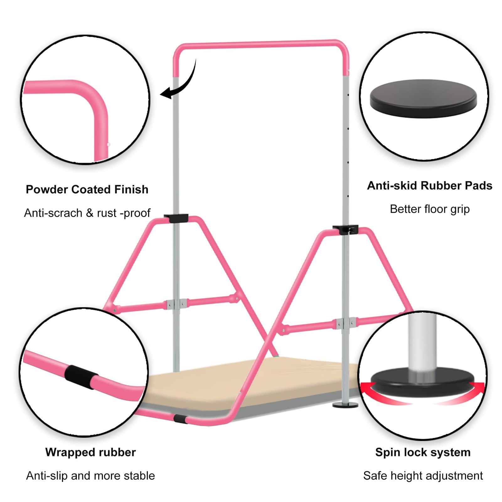 Gymnastics Bar with Self-Inflating Mat for Kids, Adjustable Height Gymnastic ...