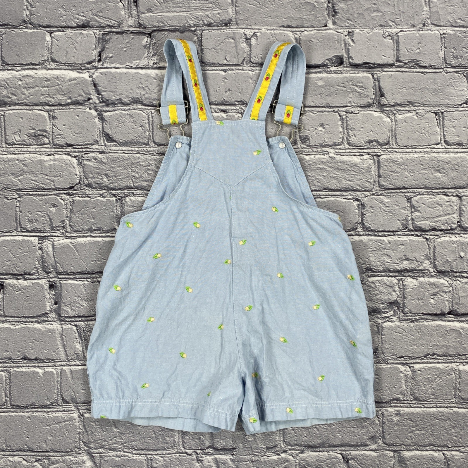 Vintage Mickey Co Shortalls Girls Size 4 Blue Mickey Minnie Mouse Embroidery