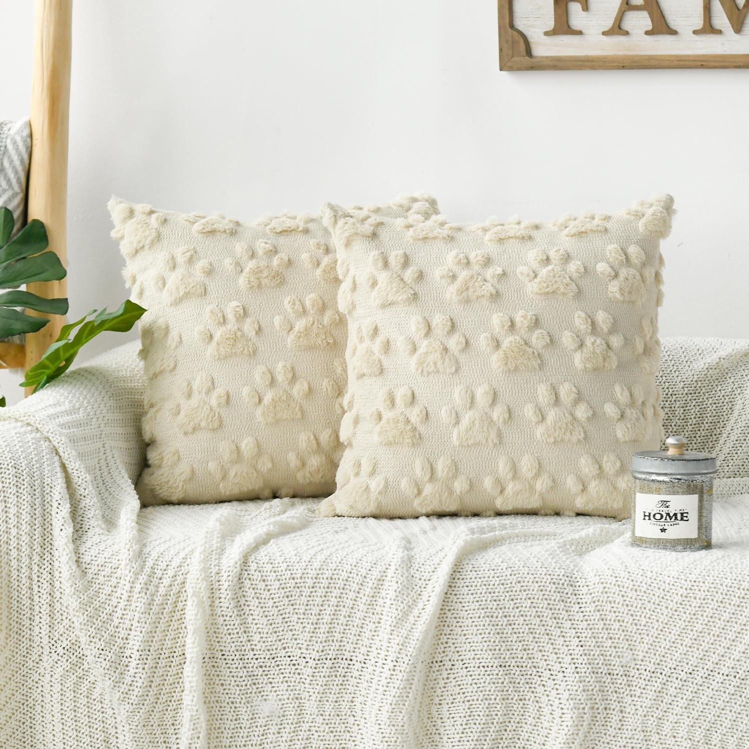 Throw Pillow Covers 18x18 Christmas Dog Paw Plush Faux Fur Farmhouse 2 Pack