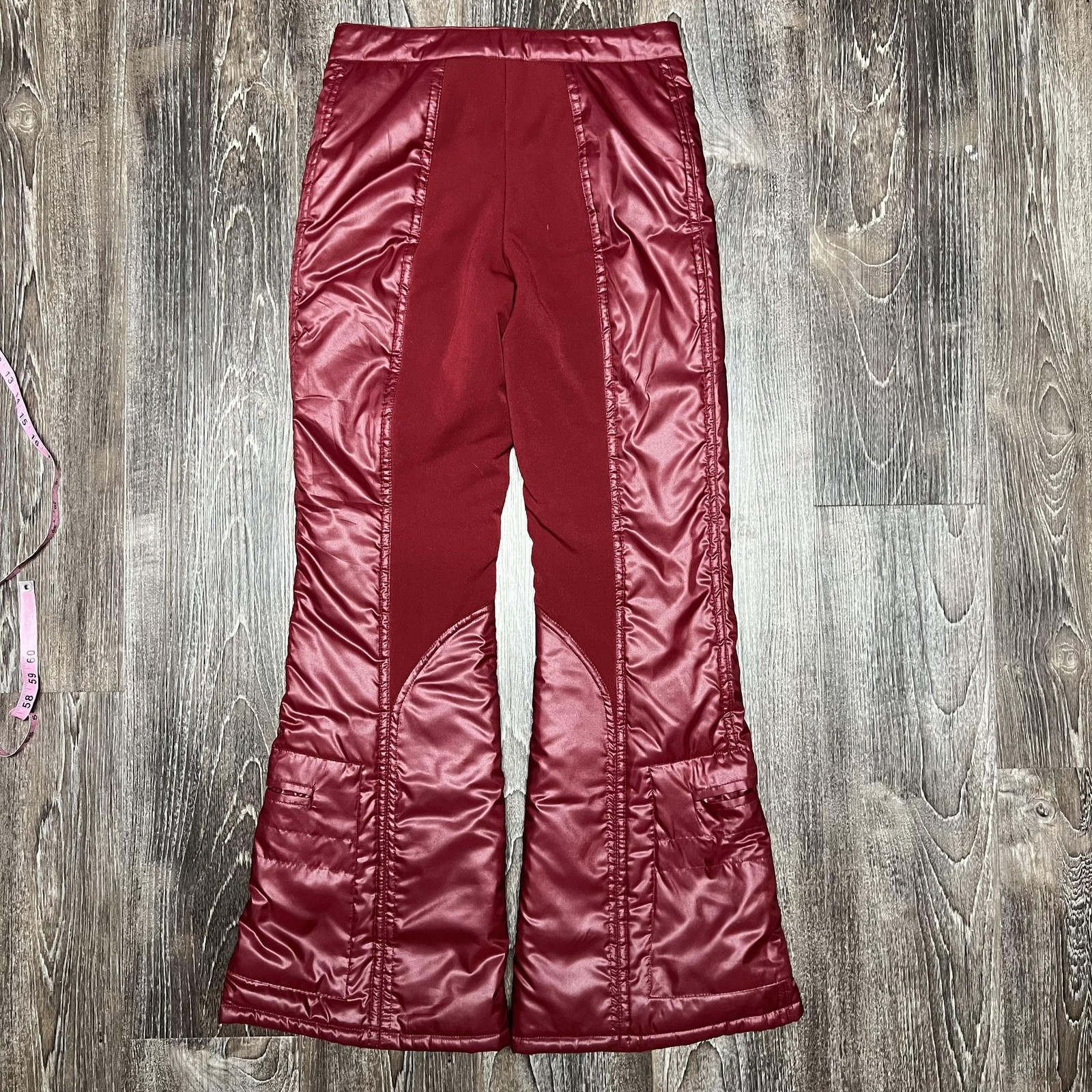 Vintage Ski Snow Pants Womens Medium Red Satin Flare Insulated 70s 80s
