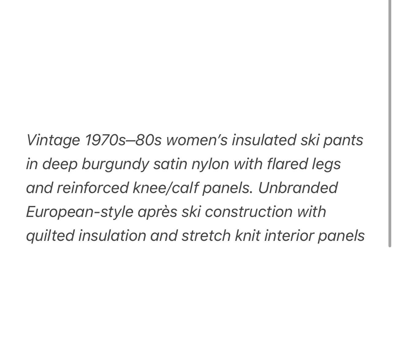 как выглядит Vintage Ski Snow Pants Womens Medium Red Satin Flare Insulated 70s 80s фото