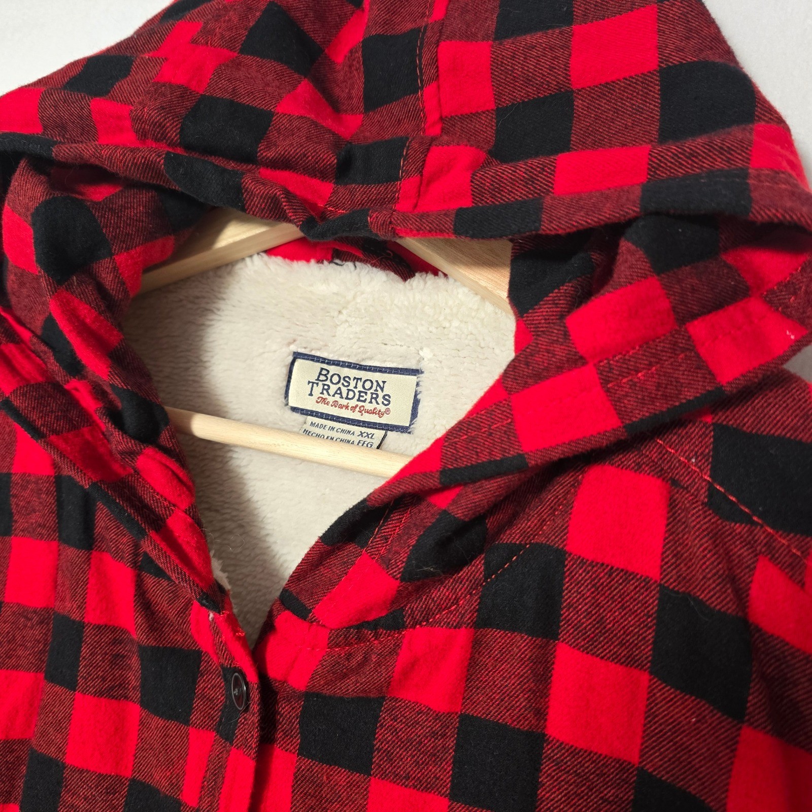 как выглядит Boston Traders Red Black Buffalo Plaid Sherpa Lined Flannel Shirt Jacket XXL фото