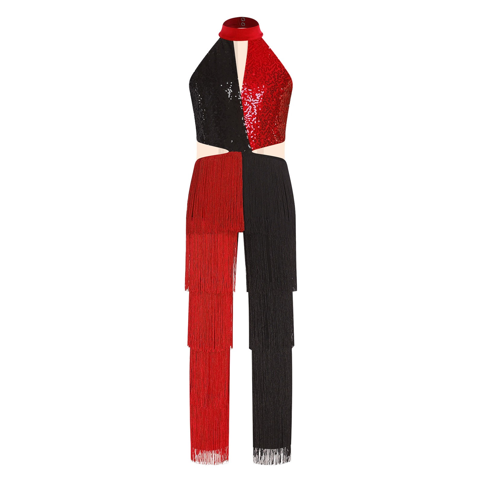 US Kids Girls Latin Tango Dance Jumpsuits Fringed Sequins Rumba Chahca Samba