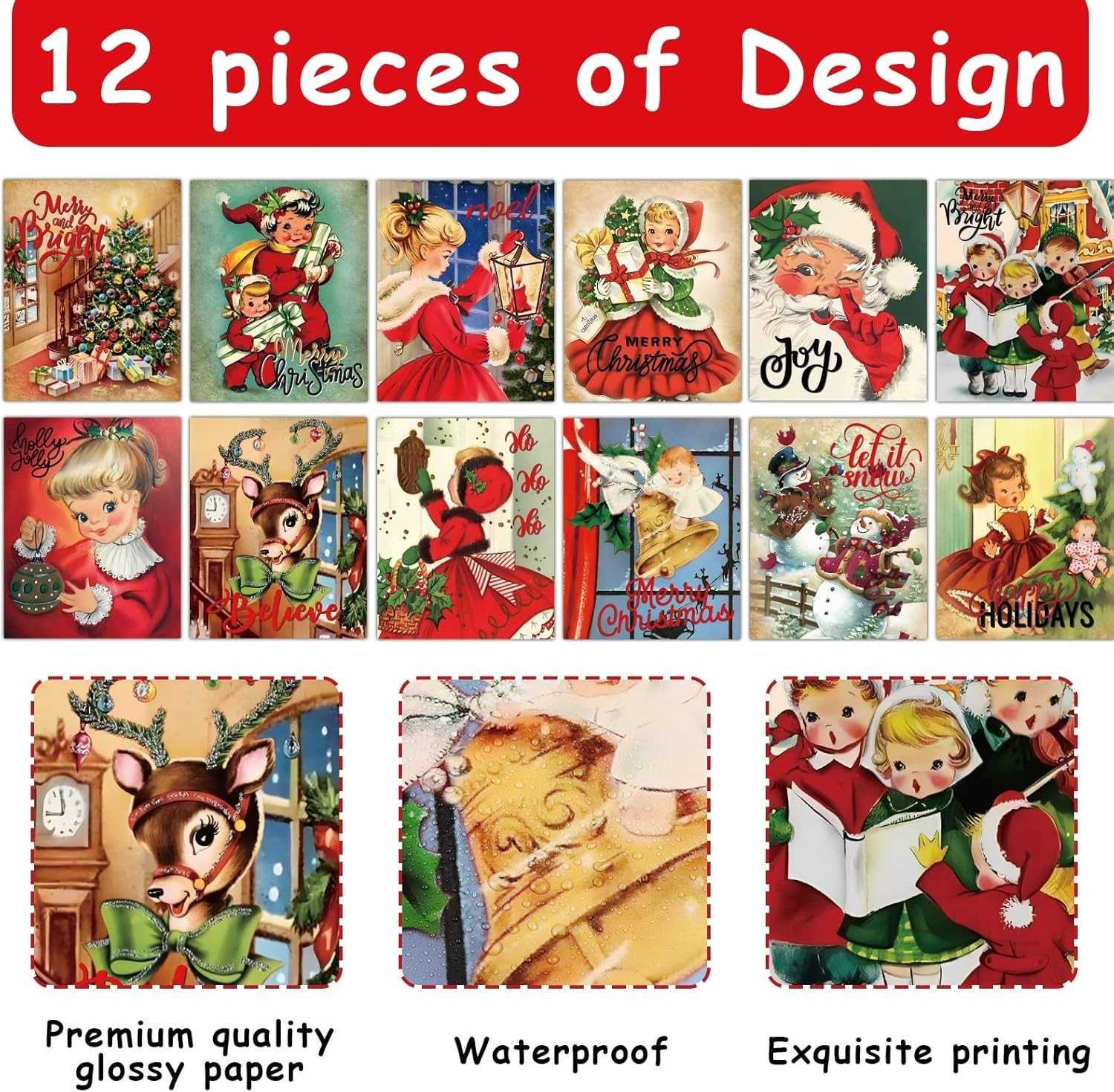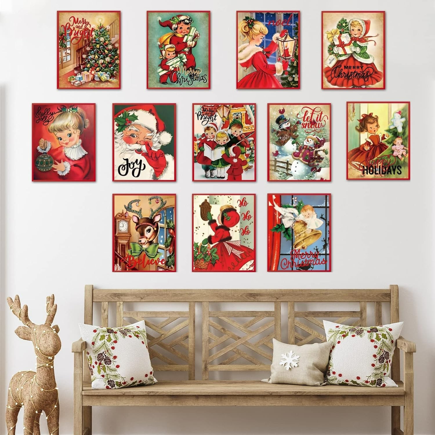 Set of 12 Vintage Christmas Wall Art Posters, 8x10 Inch Decor for Holiday Cheer