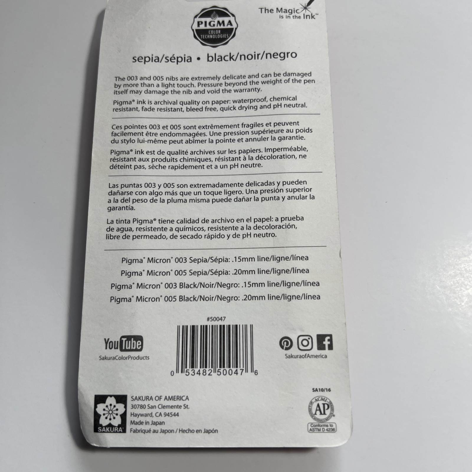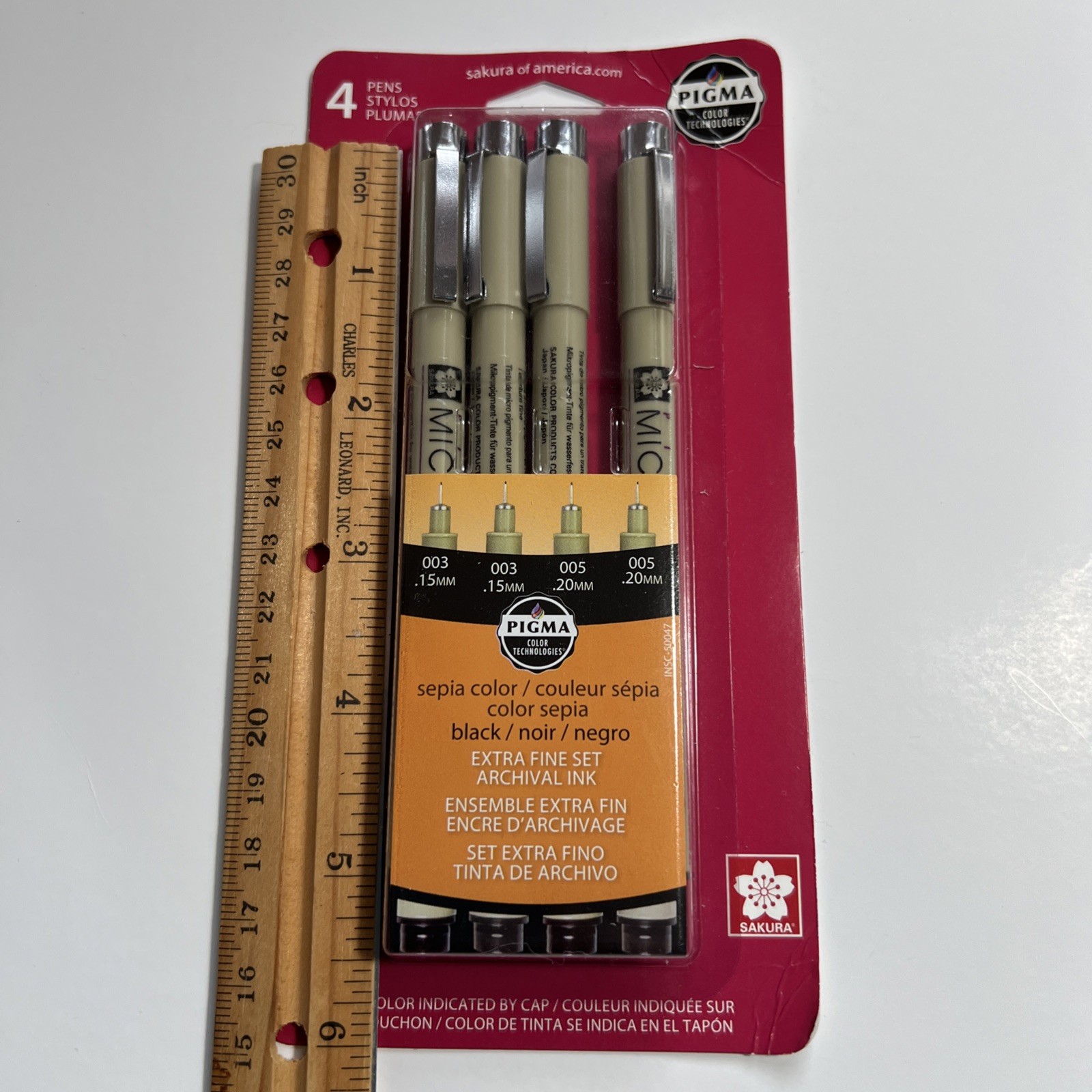 SAKURA PIGMA MICRON 4 Pens - Two 003 Two 005, Color Sepia And Black, New