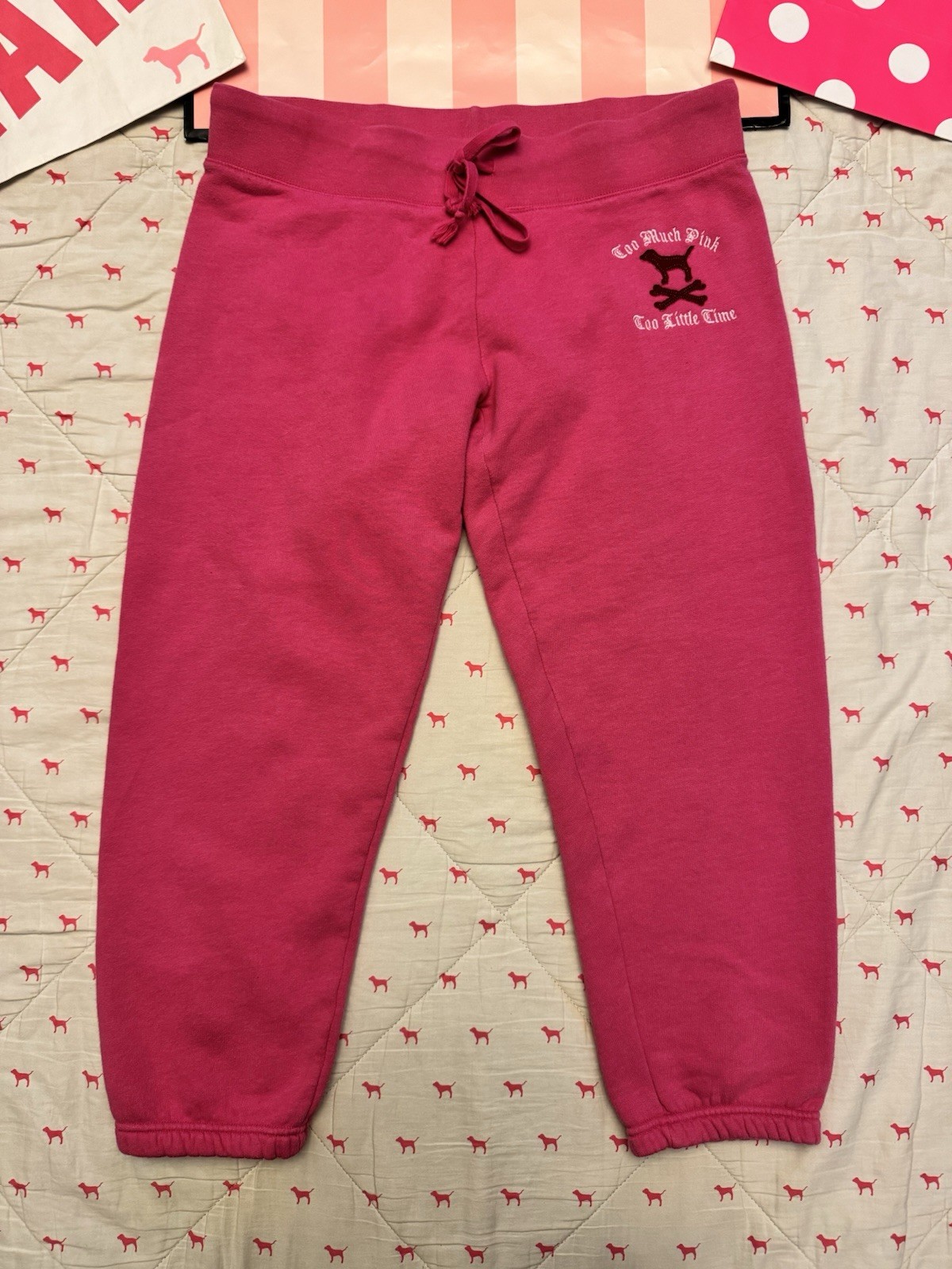 как выглядит VS PINK VINTAGE Y2K SET HOODIE SWEATPANTS ROCK N ROLL DOG SKULL CROSSBONES MED фото
