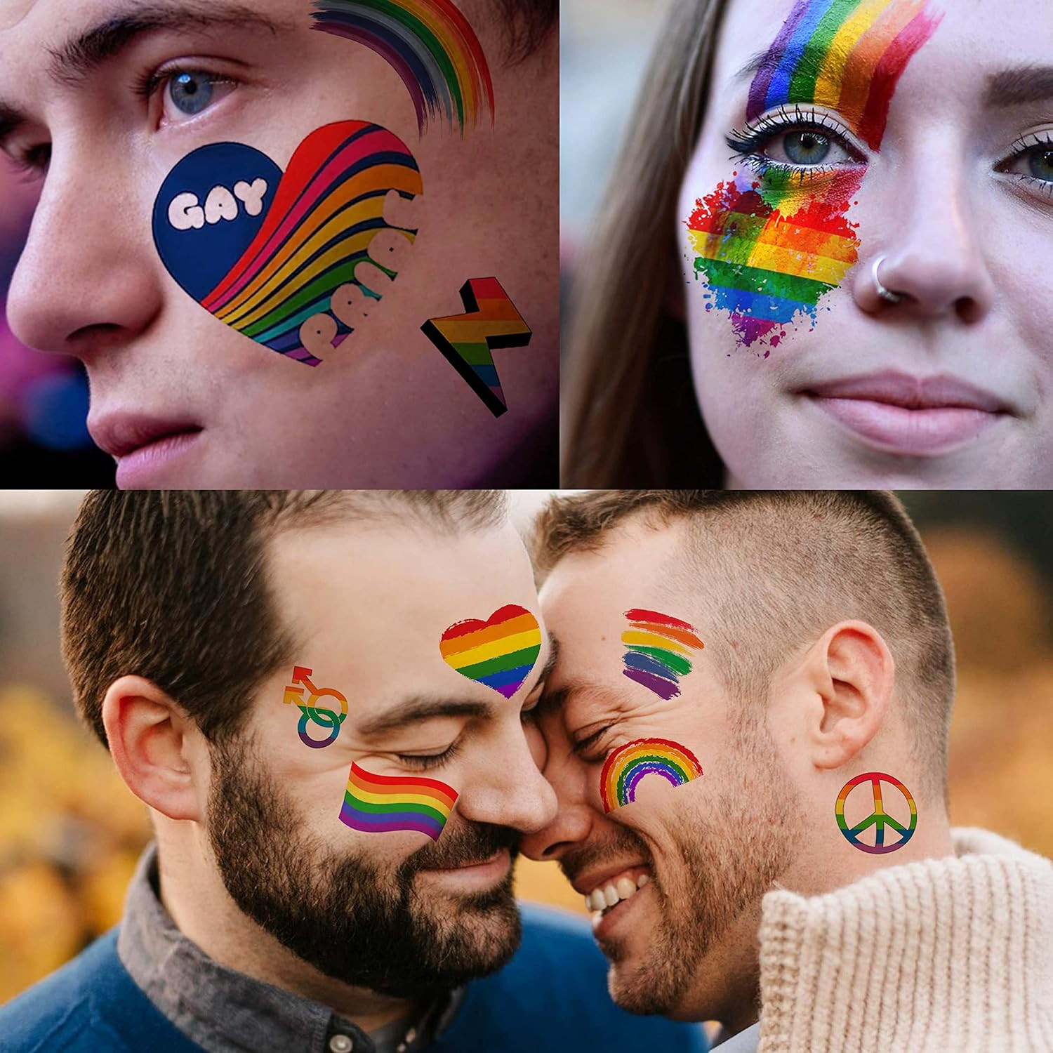 86 PCS LGBT Gay Pride Tattoos for Women Men Adults, Rainbow Temporary Tattoos,
