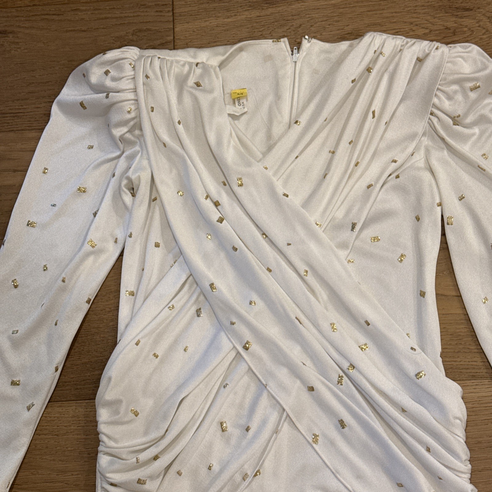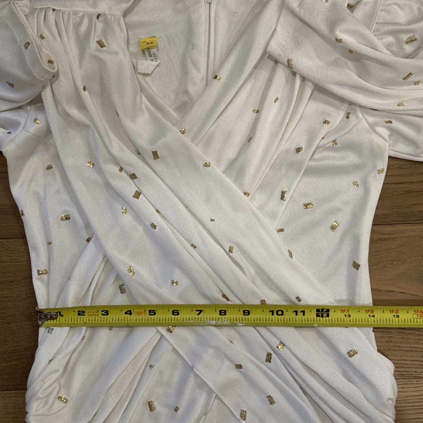Vintage 70s 80s White Gold Glitter Draped Cocktail Dress Sz XS/S USA