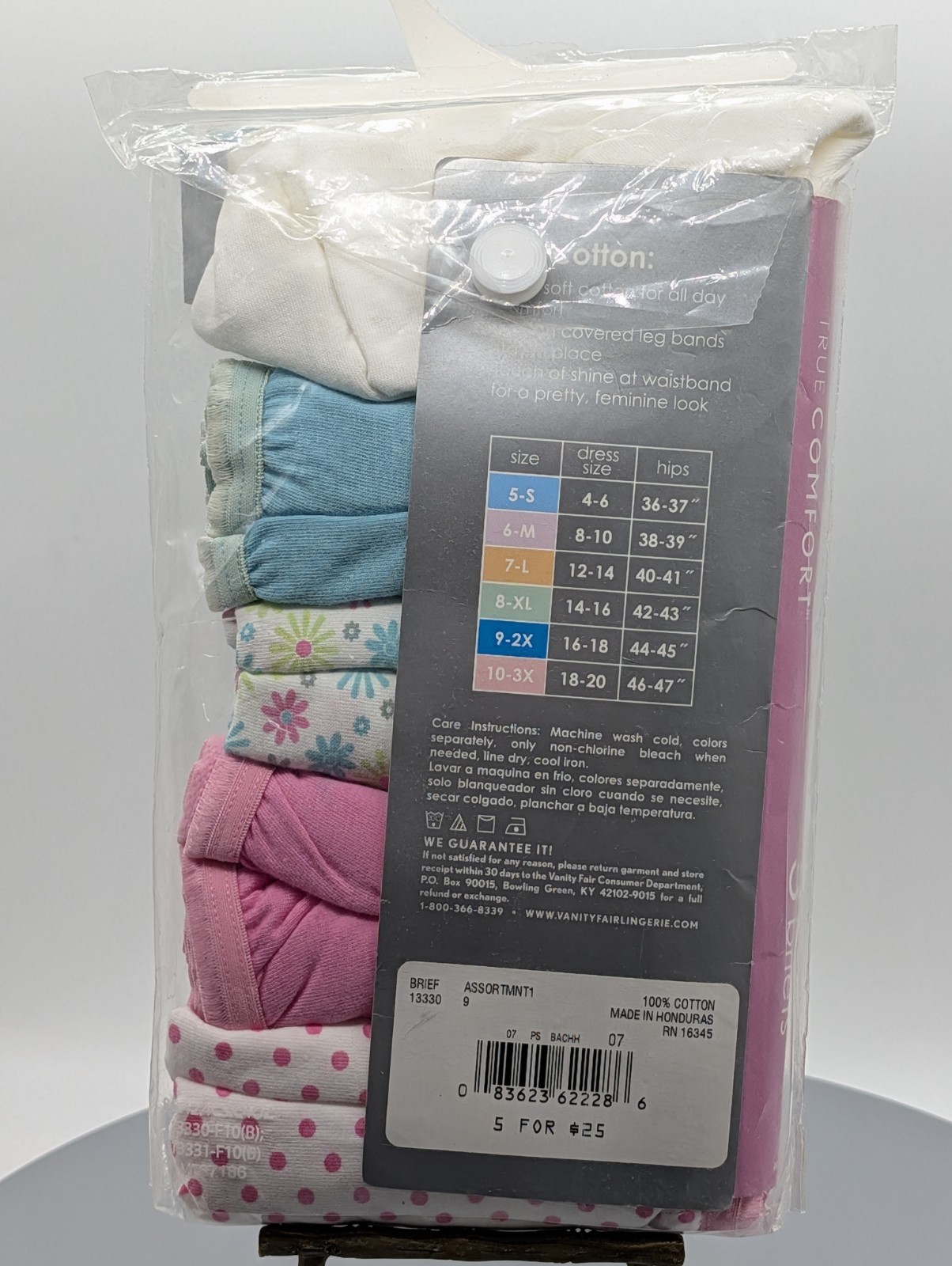 5 Pack Vanity Fair 100 Cotton True Comfort Women's Briefs Size 9