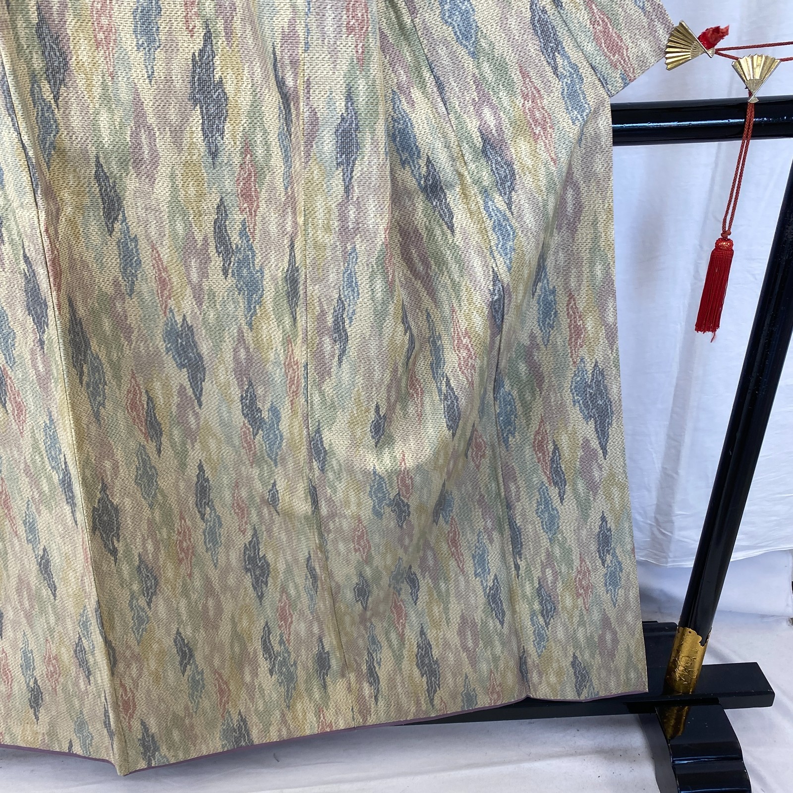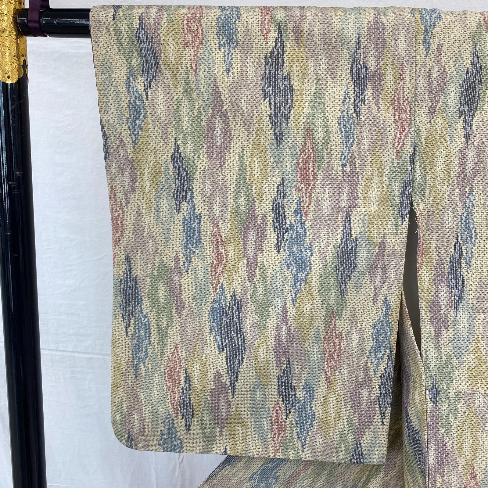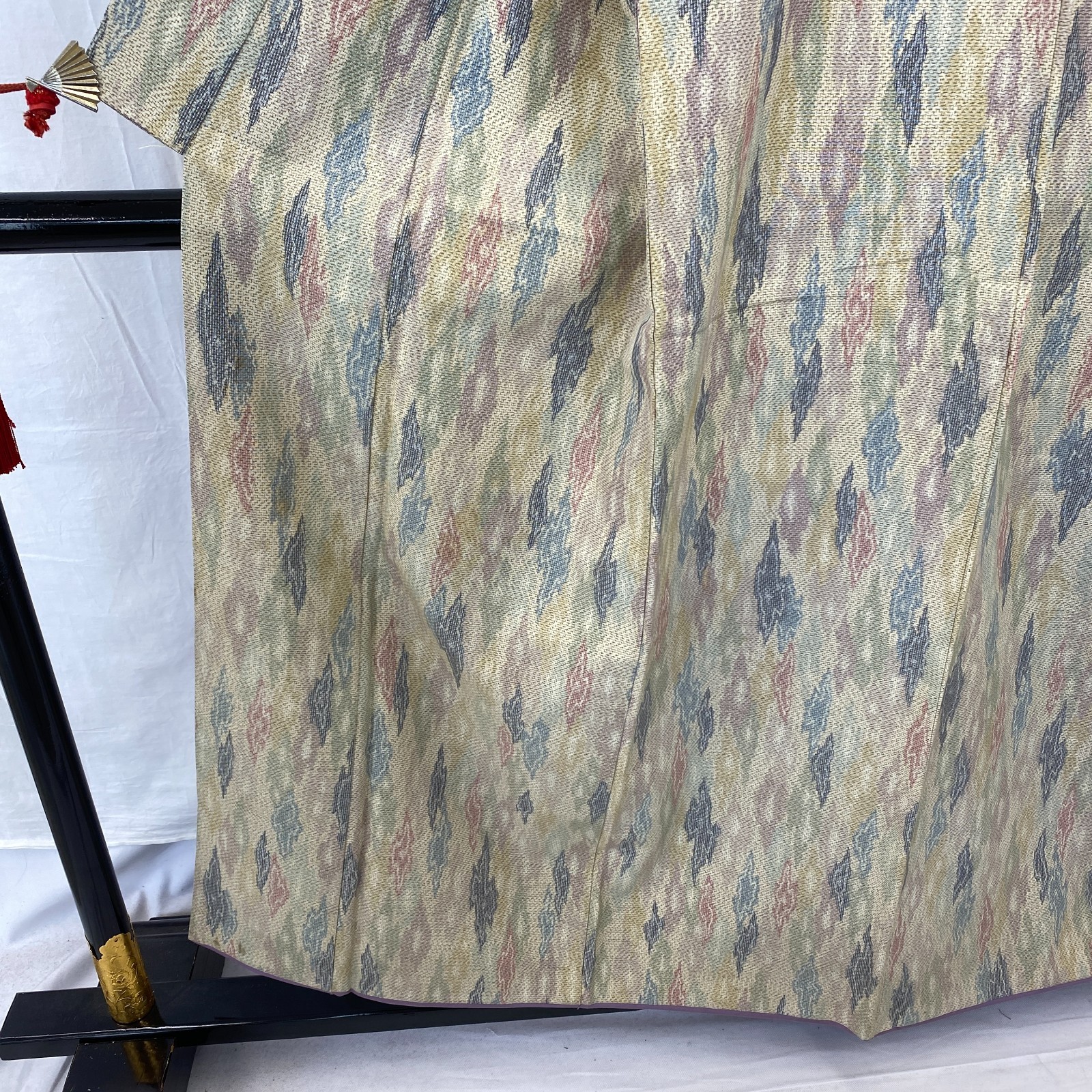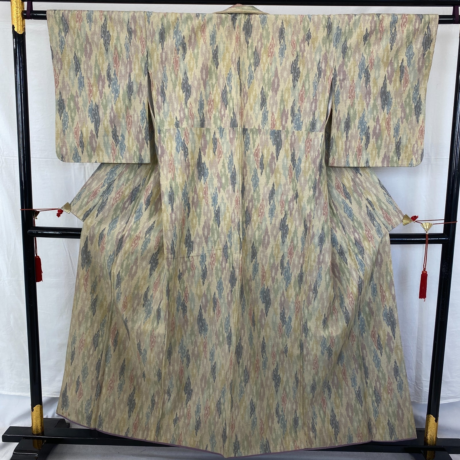 как выглядит Japanese Vintage Kimono Silk Beige Tumugi Traditional Authentic Length 61 in фото