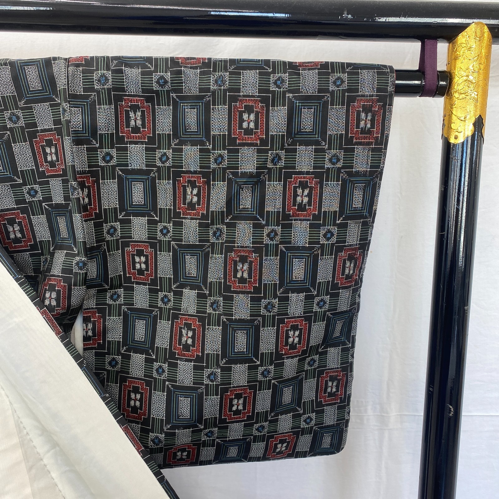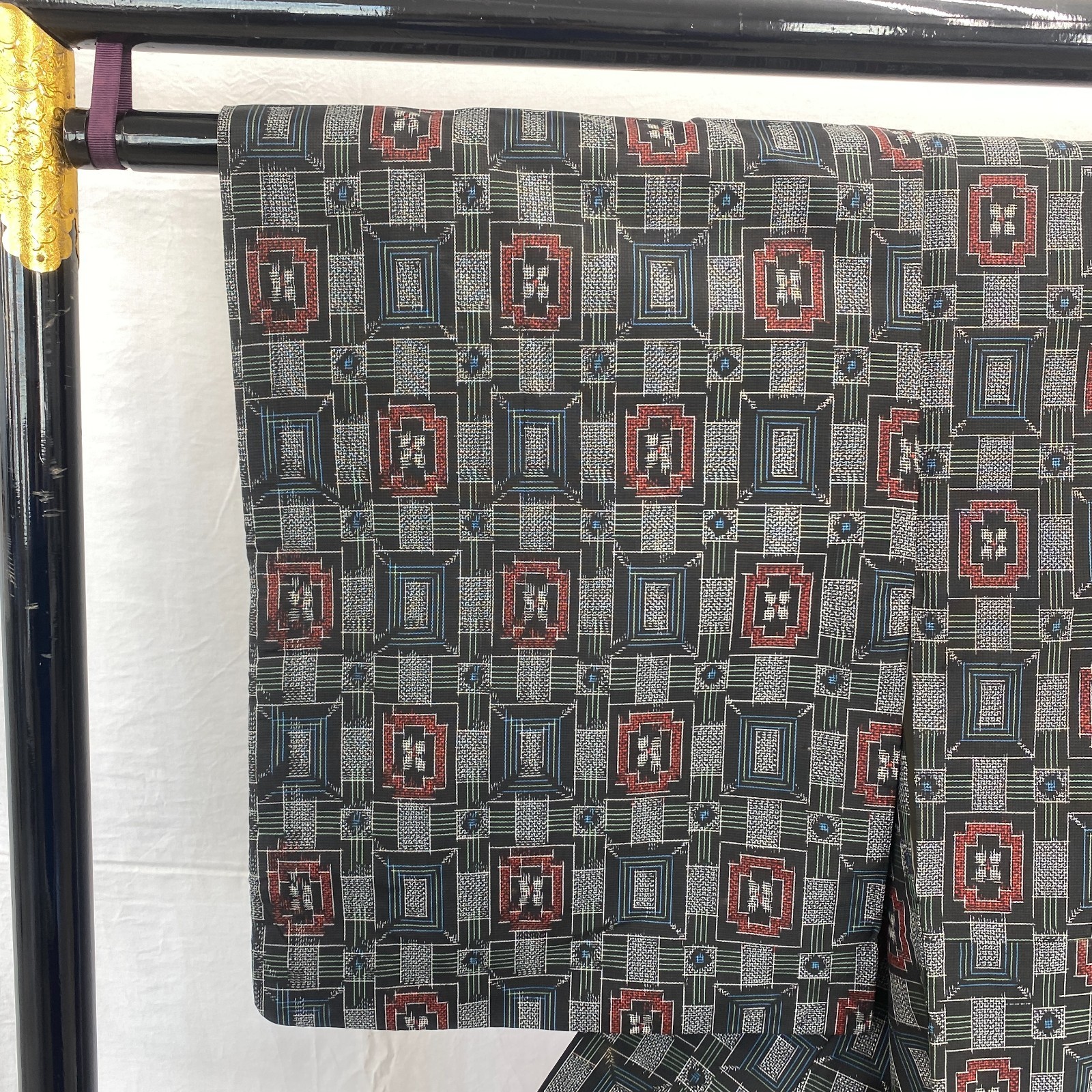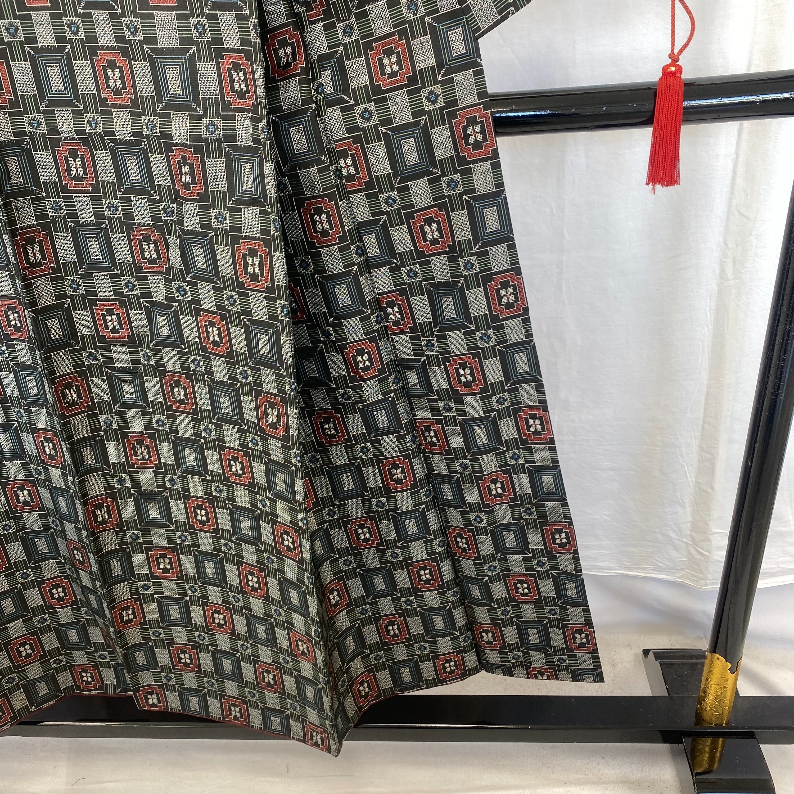 как выглядит Japanese Vintage Kimono Silk Black Oshima Traditional Authentic Length 59 in фото