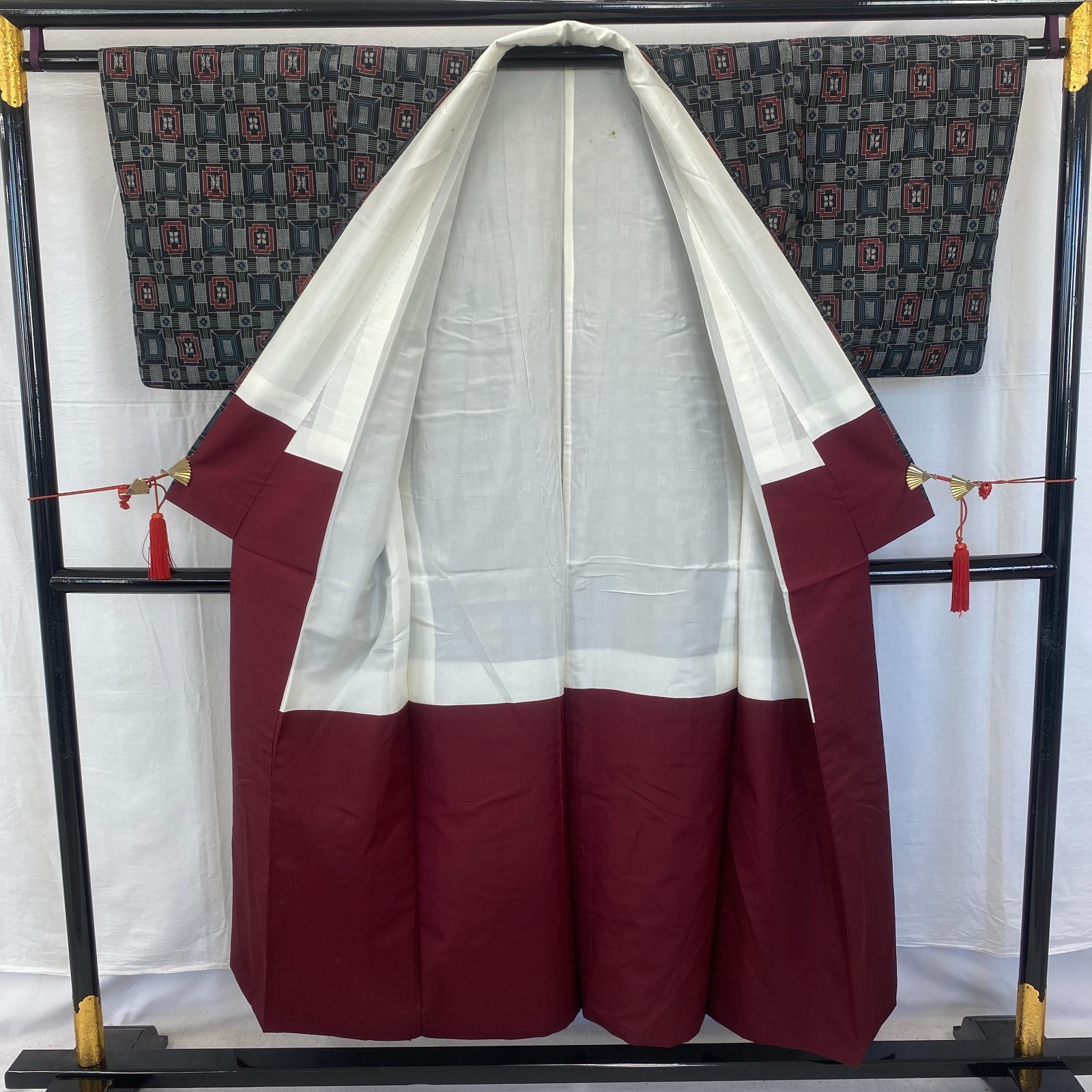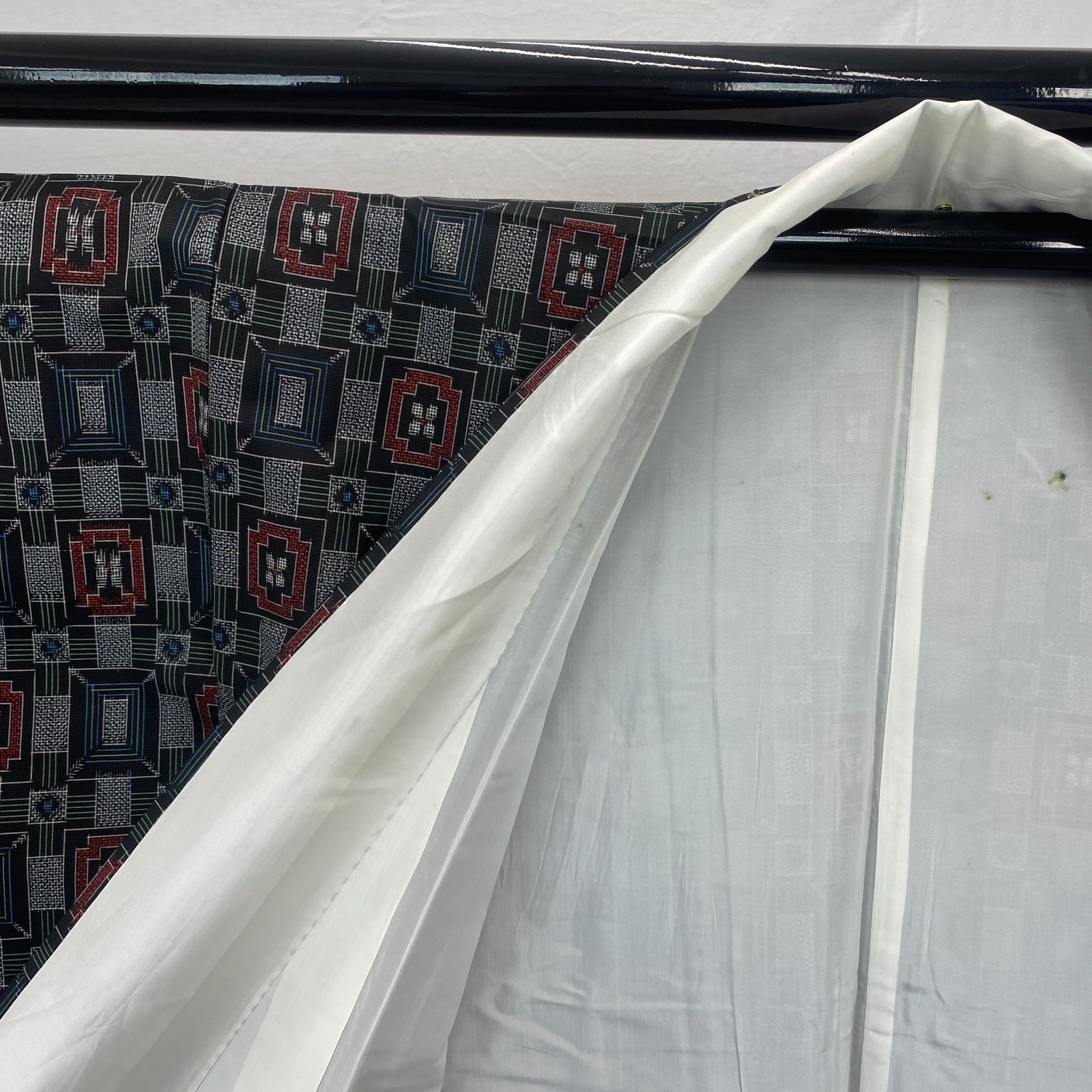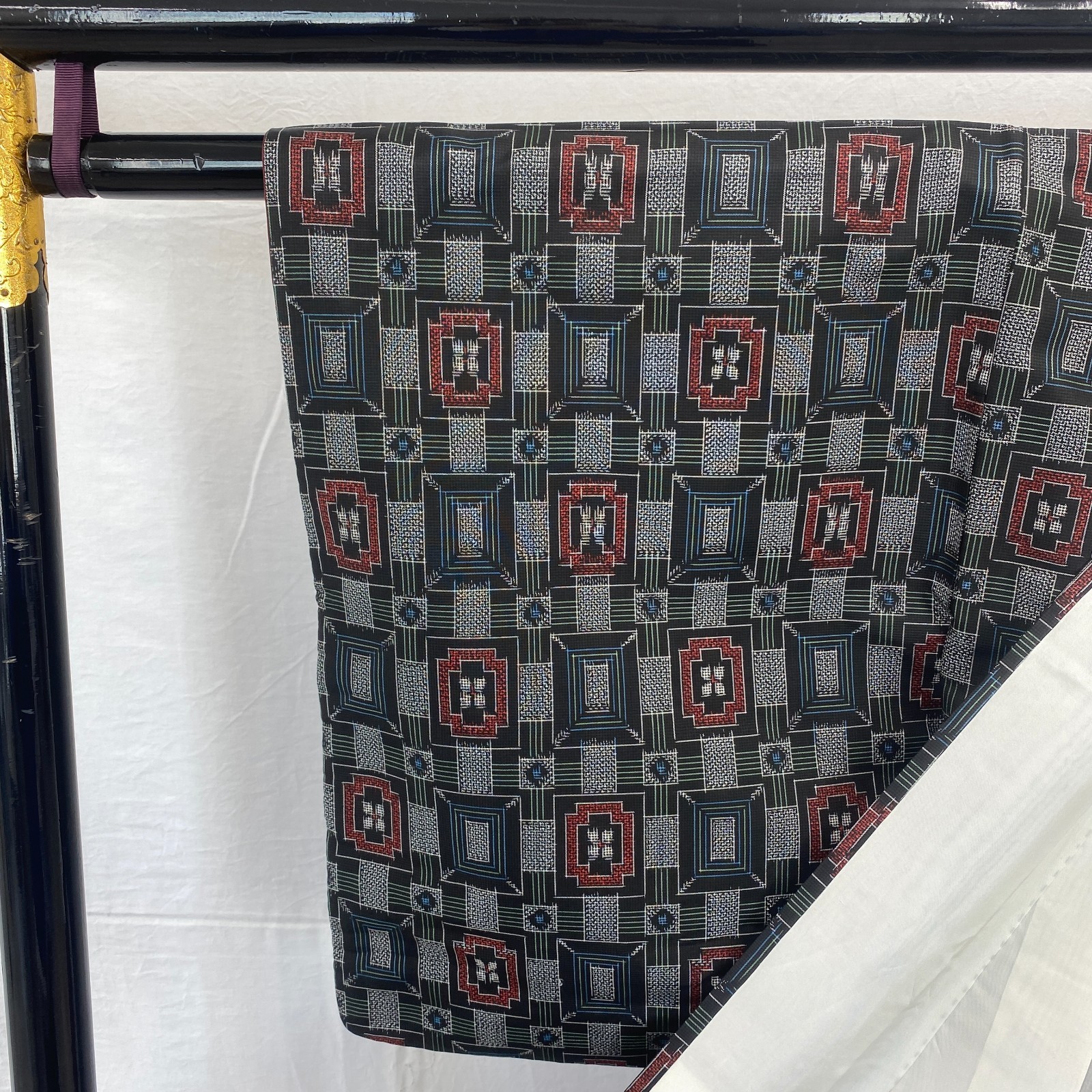 как выглядит Japanese Vintage Kimono Silk Black Oshima Traditional Authentic Length 59 in фото
