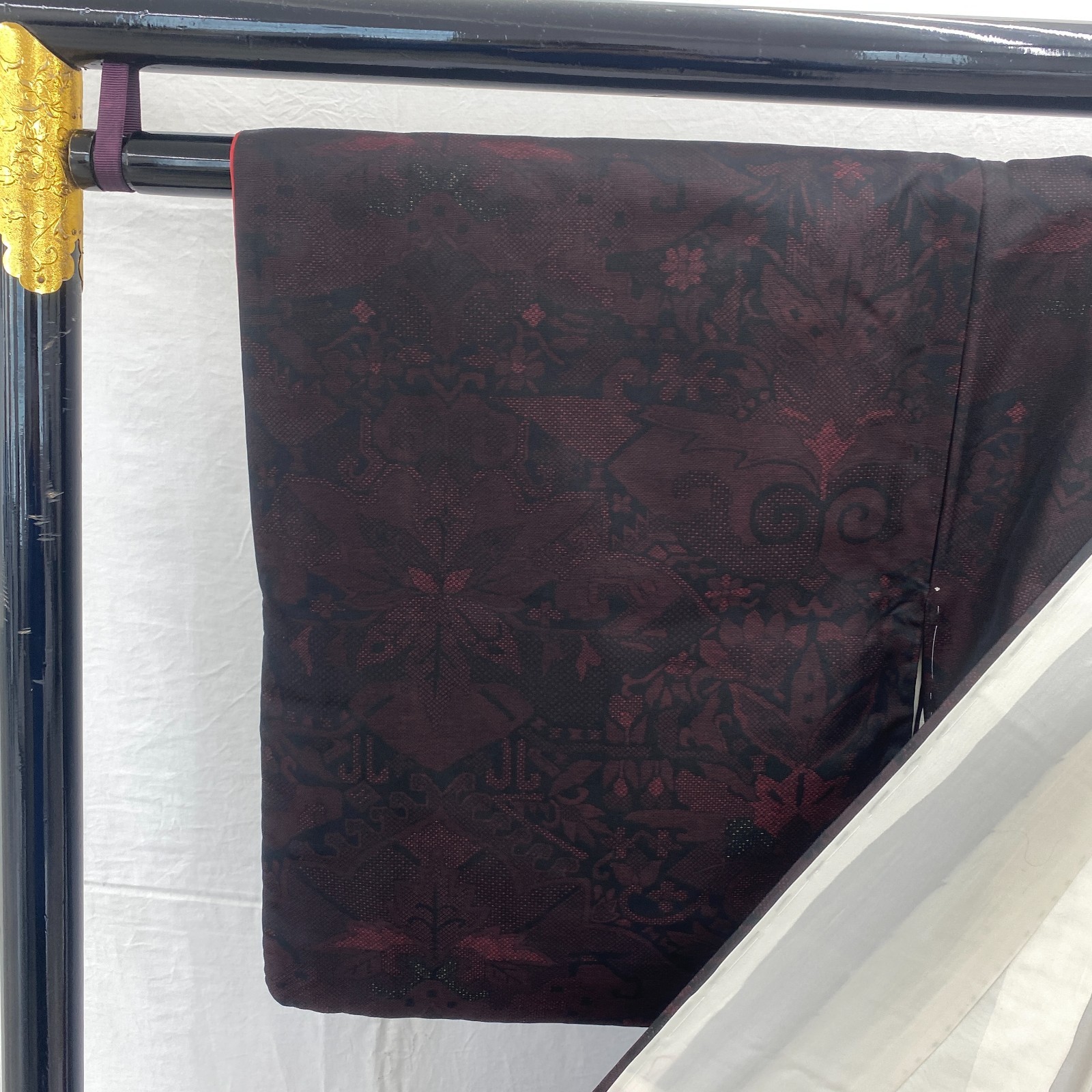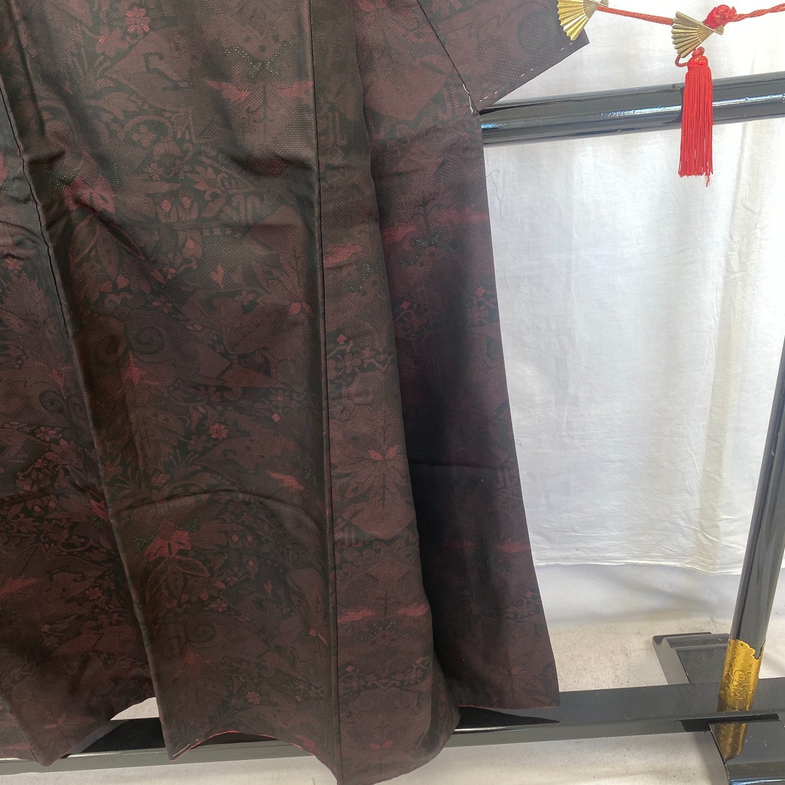 как выглядит Japanese Vintage Kimono Silk Black Oshima Traditional Authentic Length 59 in фото