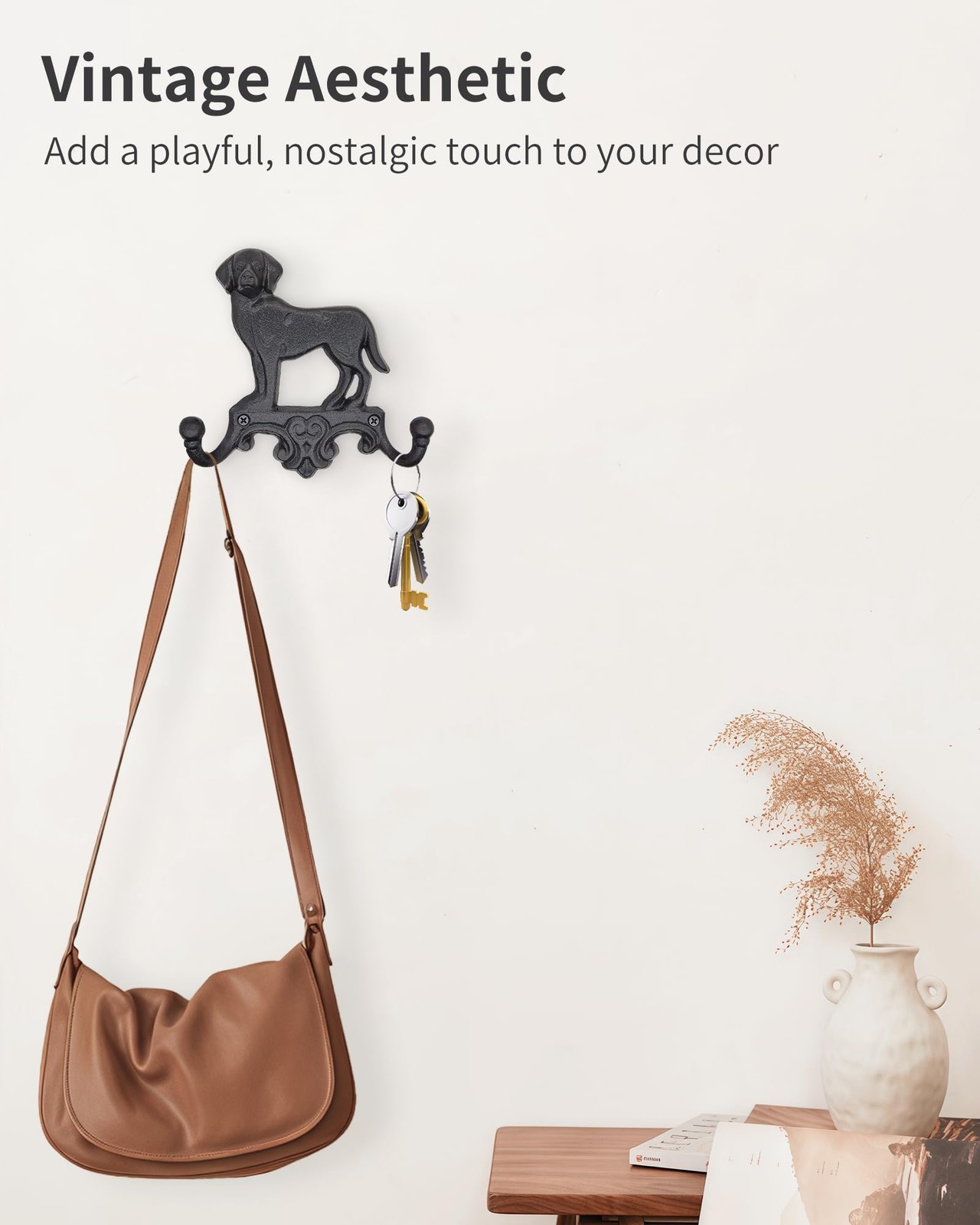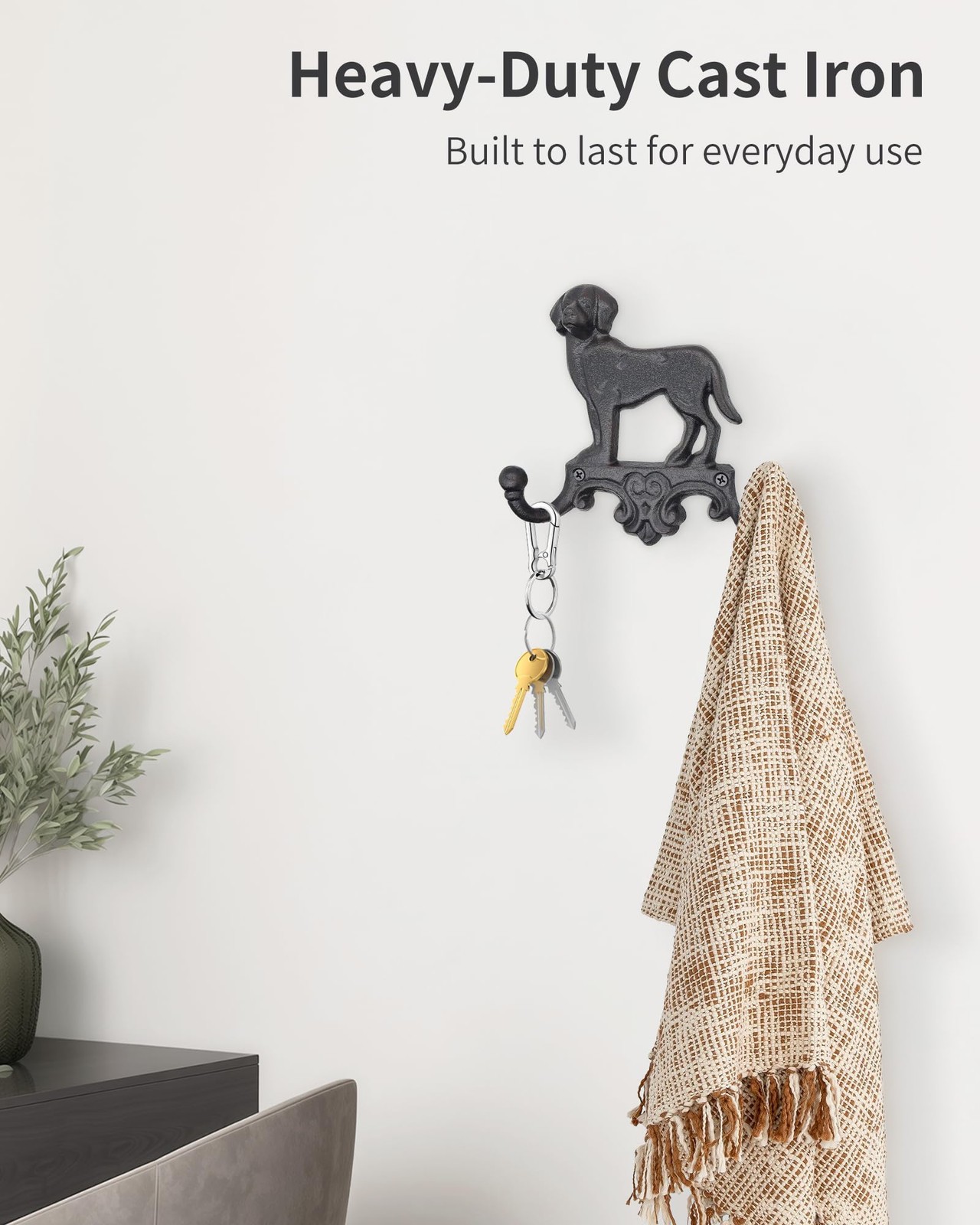 Cast Iron Dog Wall Hooks for Hanging, Heavy Duty Dog Leash Holder for Wall Mo...