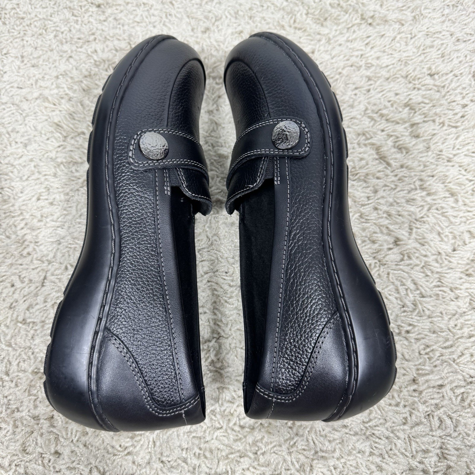 как выглядит Clarks Cora Daisy Women s Size 8 Black Classic Leather Slip On Loafer Shoes фото