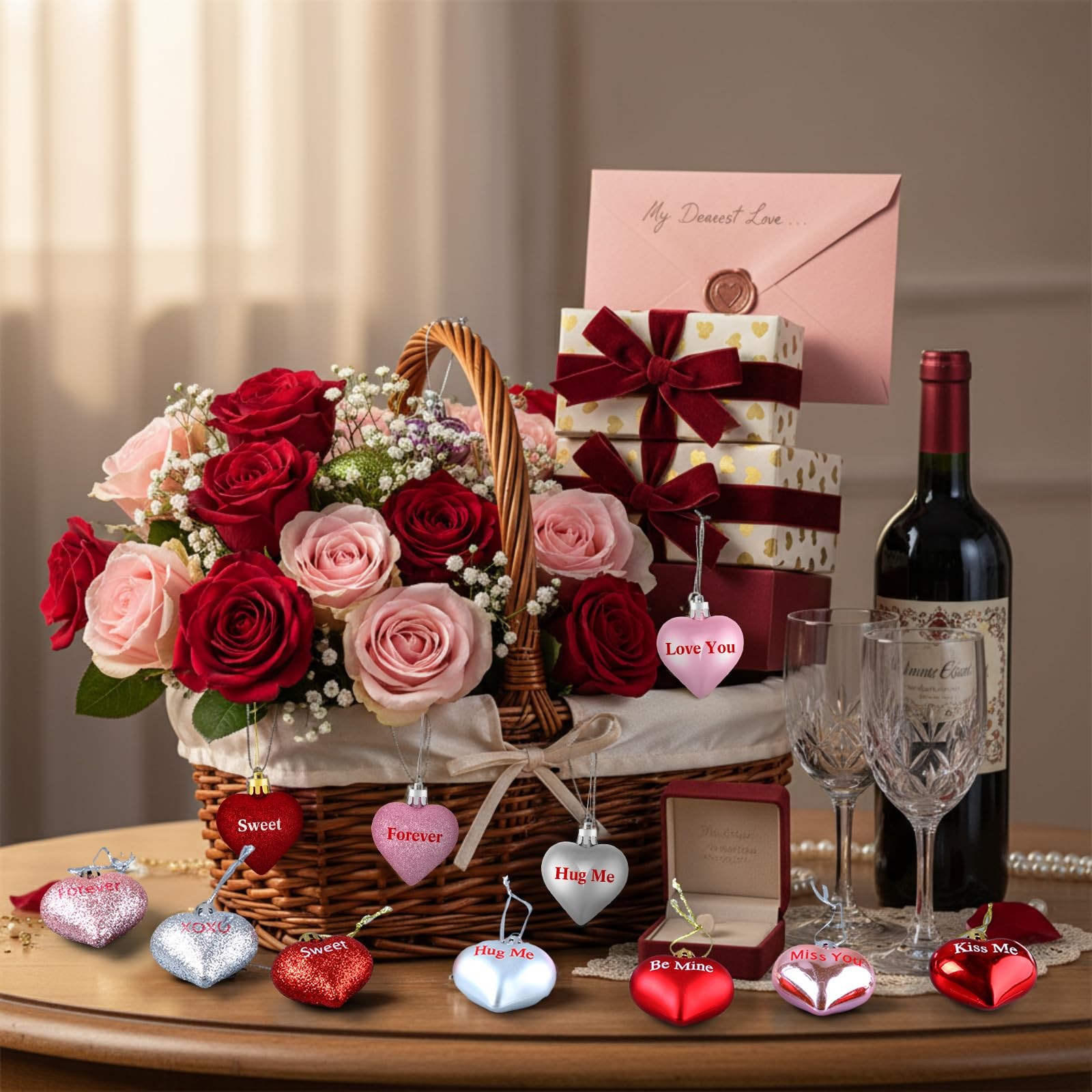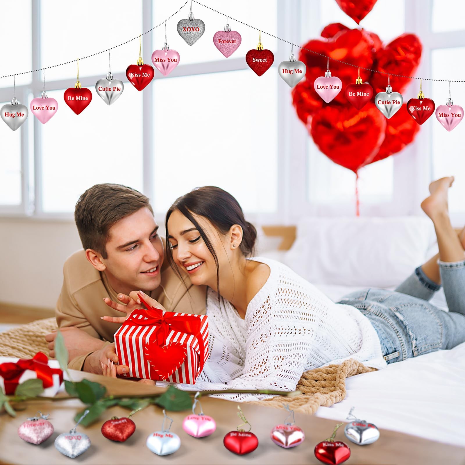 30 Pack Valentines Heart Shaped Ornaments Valentines Decorations Heart Hangin...