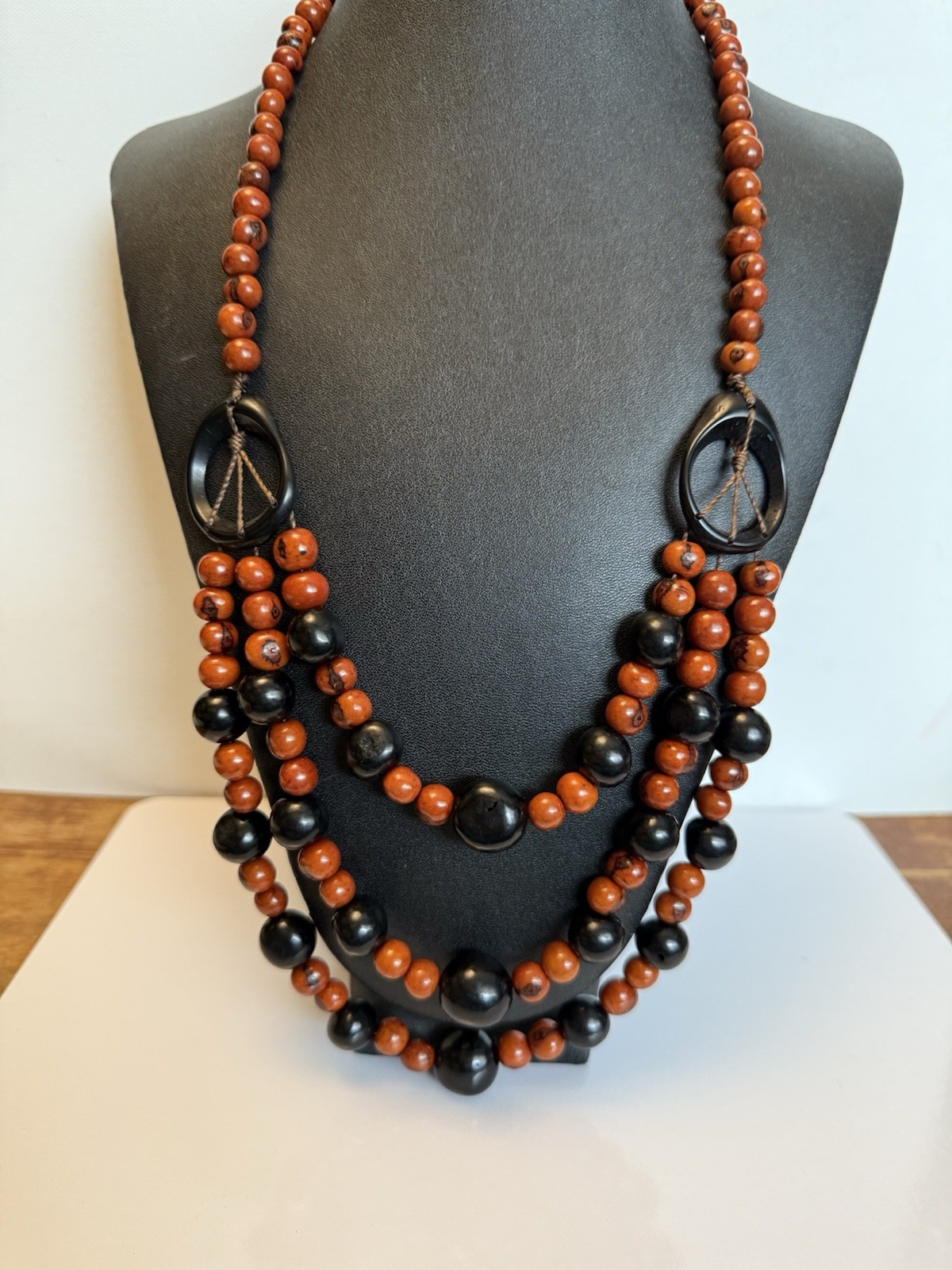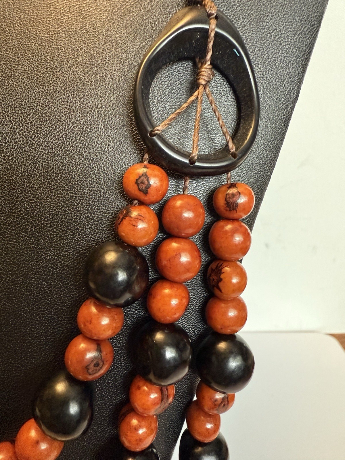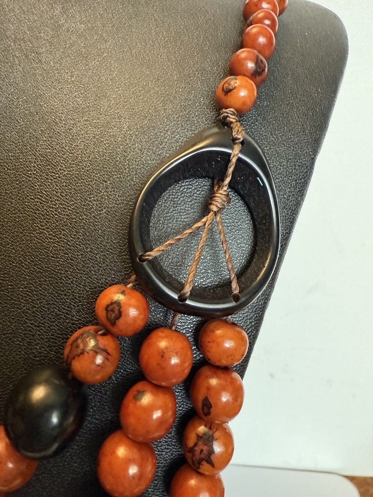 Multi-strand Natural Material , Tagua Nut and Wood Bohemian/Hippie Necklace