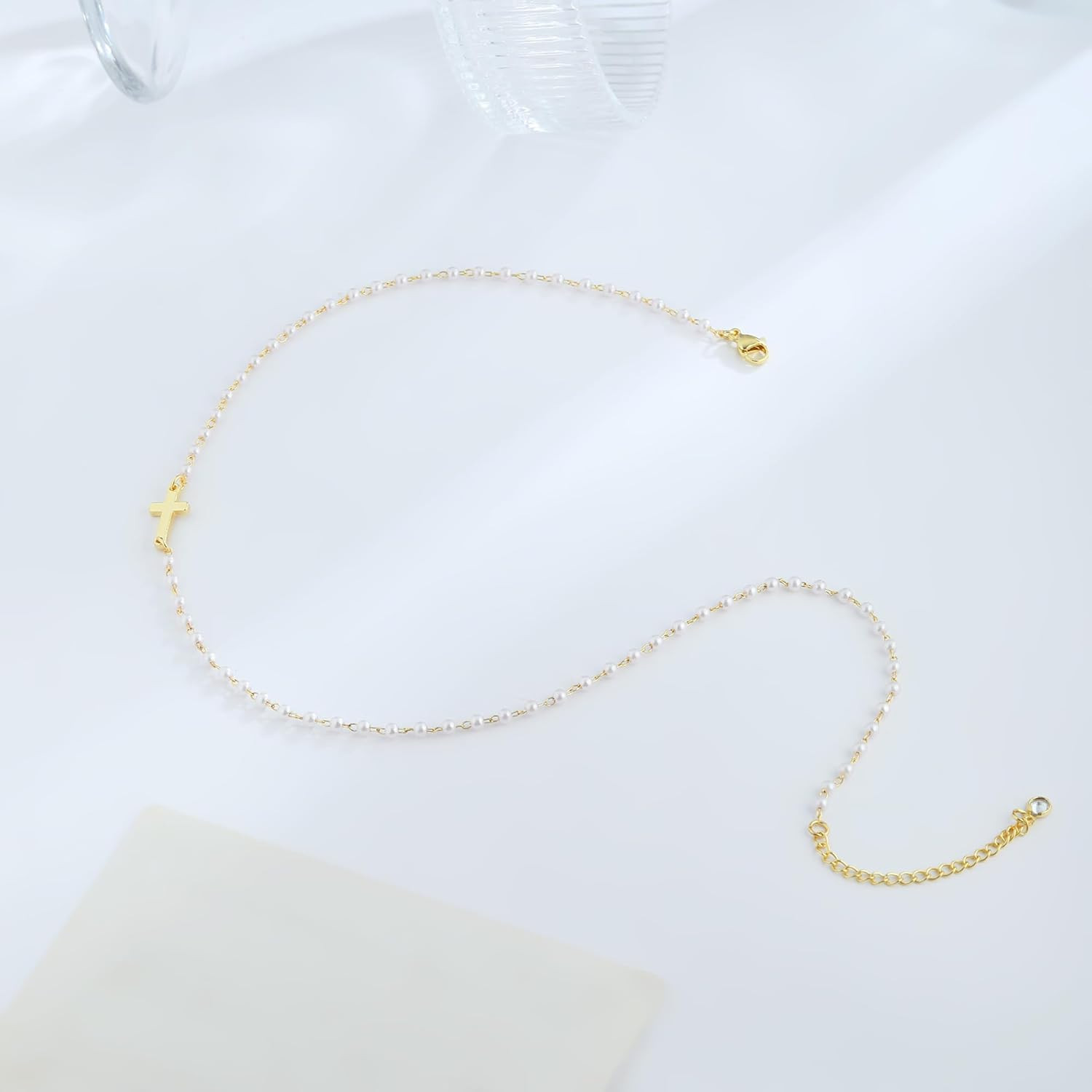 Cross Necklace for Women, 14K Gold Plated Cross Pendant Necklace Dainty Cross Ch