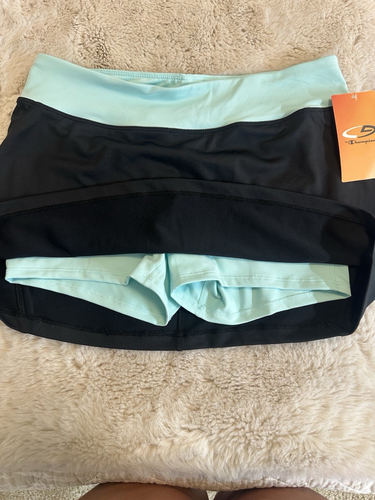 как выглядит Champion women s athletic skort in black with a mint waistband. Size Small фото