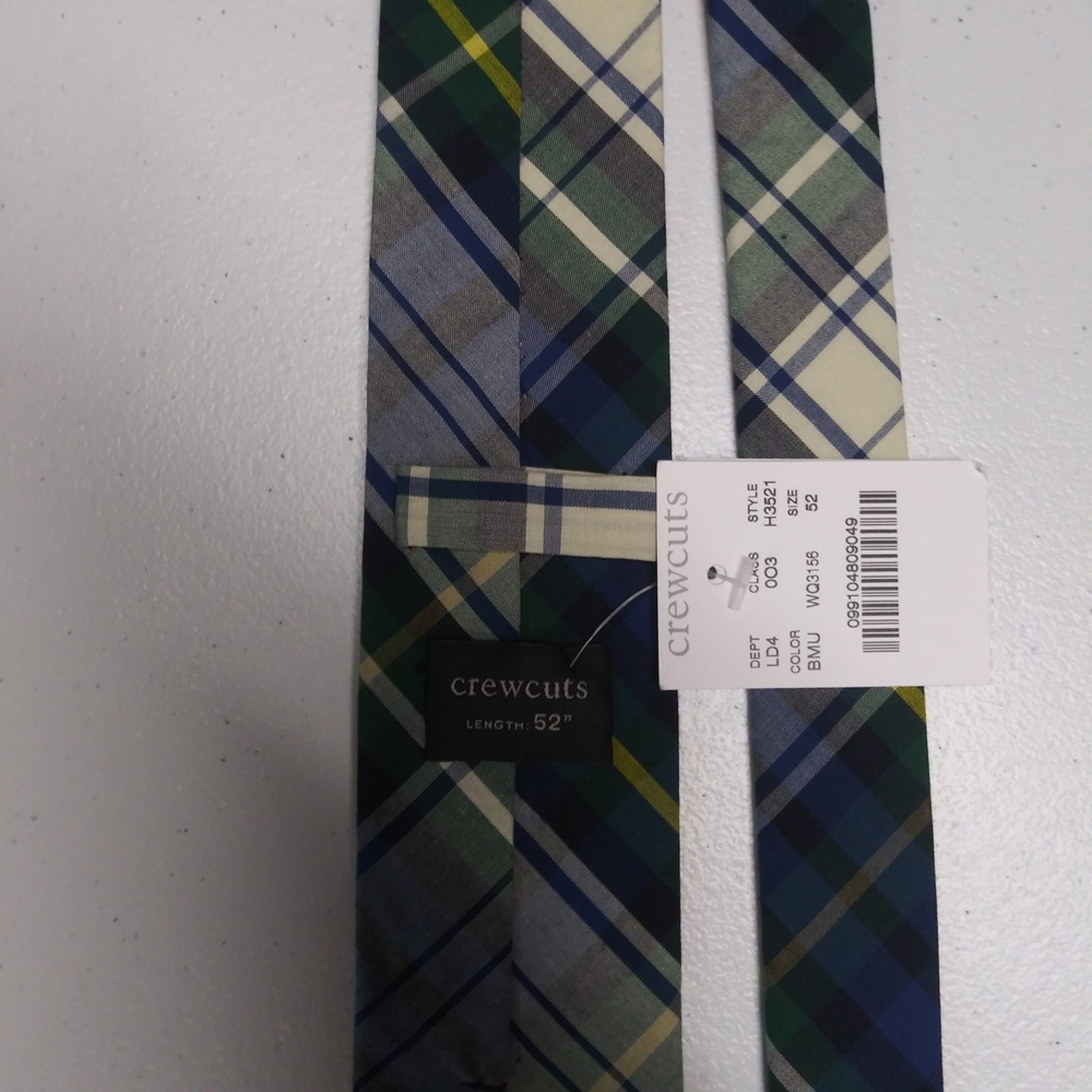 Crewcuts By J Crew Boys Cotton Tie Dudley Plaid Tie Blue Green Black Yellow 42