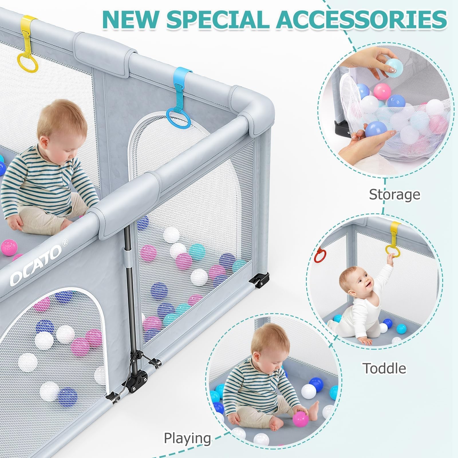 как выглядит OCATO Baby Playpen Foldable Playpen for Babies and Toddlers Large Play Pen Po... фото