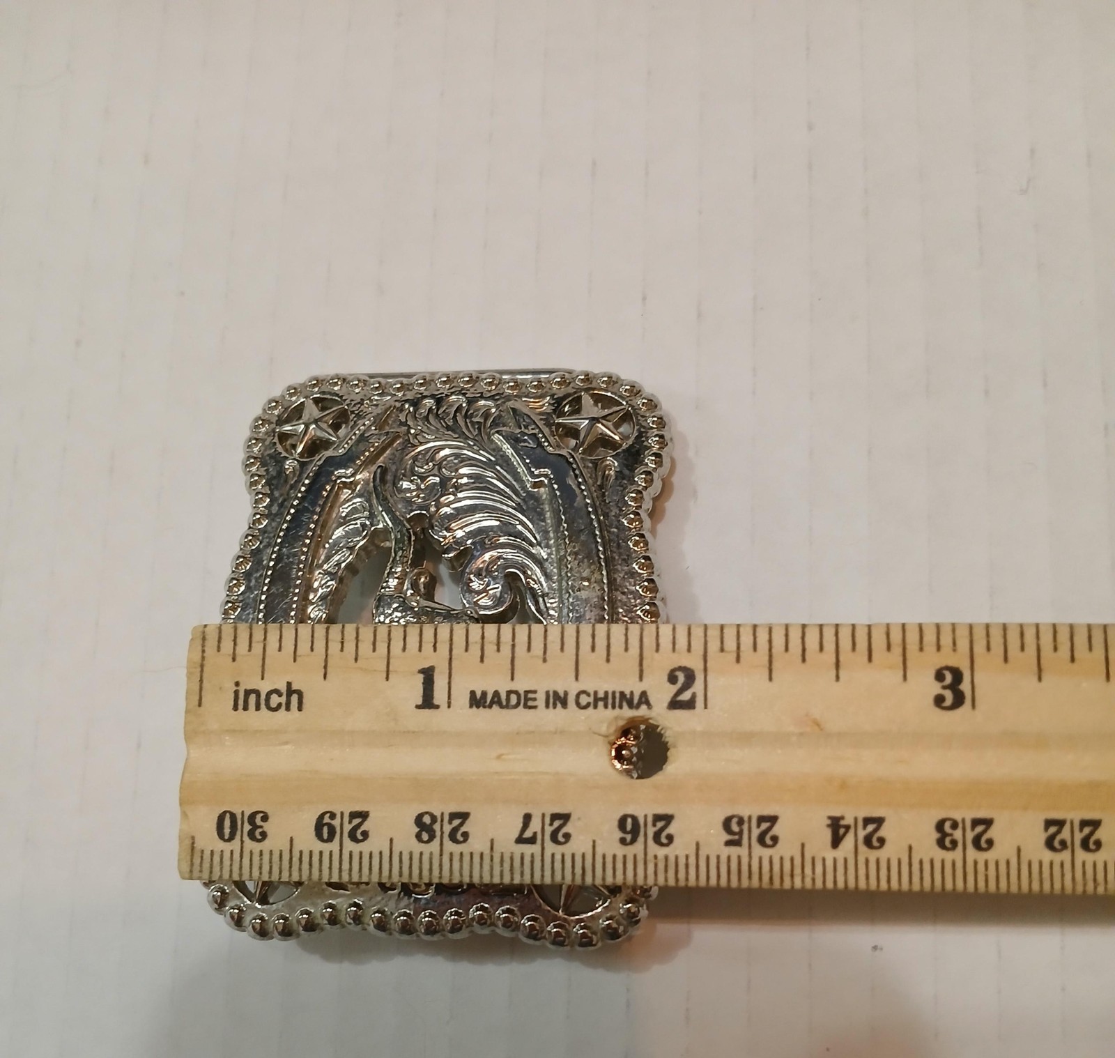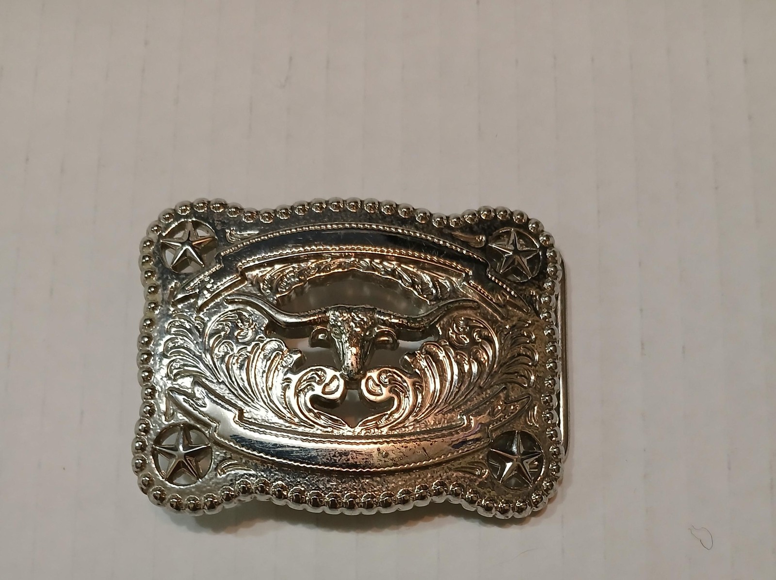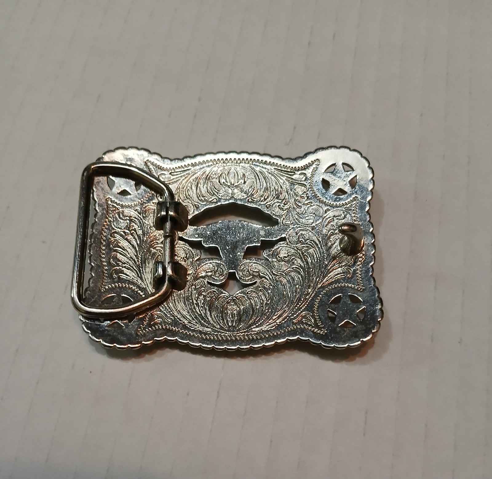 Longhorn Steer Belt Buckle Mens Silver Western Floral Stars Texas Rodeo