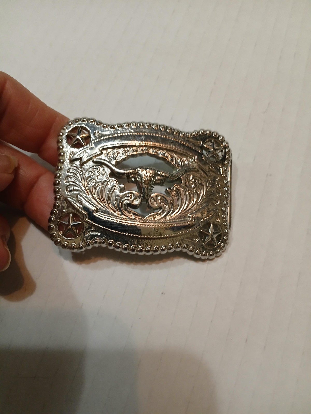 как выглядит Longhorn Steer Belt Buckle Mens Silver Western Floral Stars Texas Rodeo фото