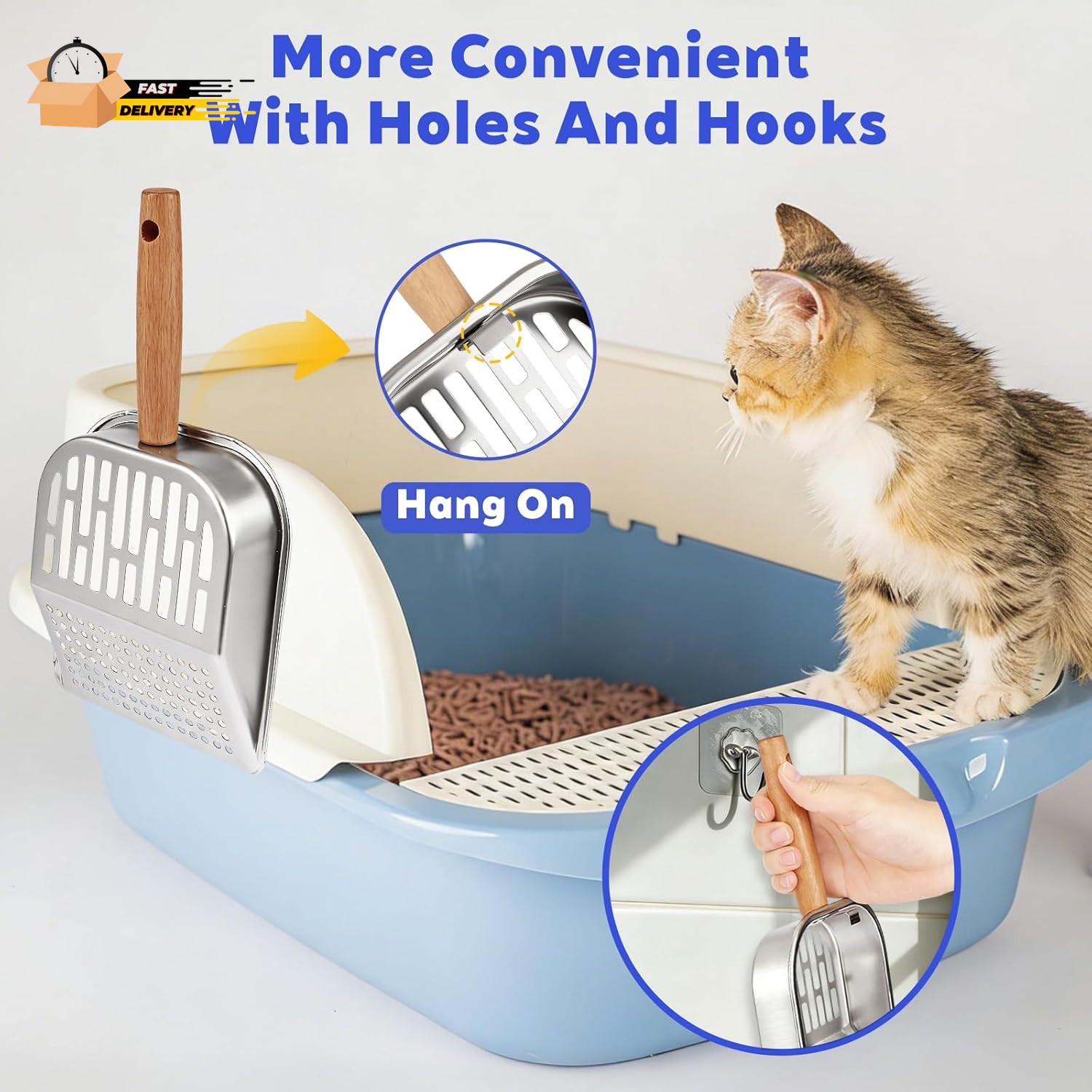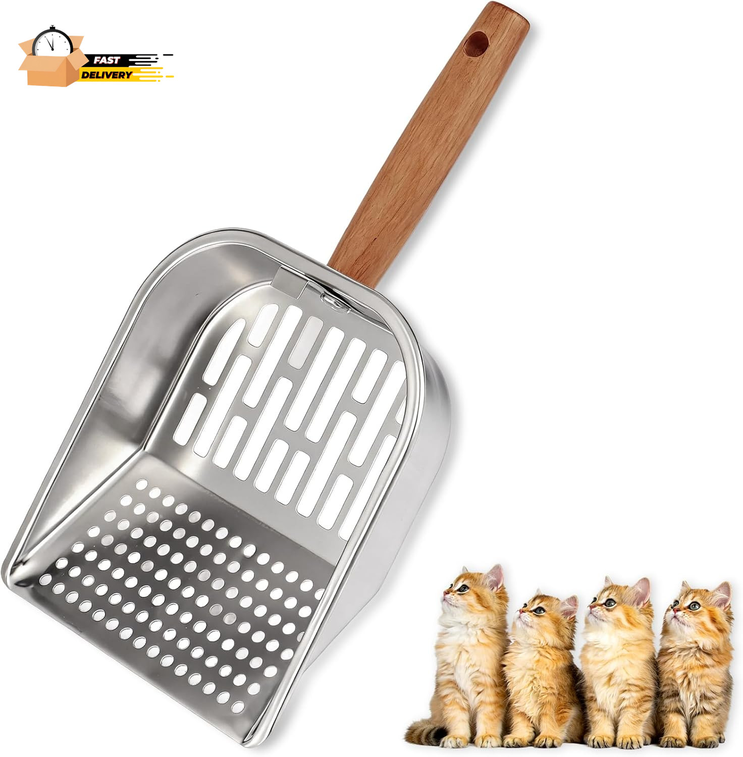 Litter Scooper, Metal Litter Scoop, Pooper Scooper with Wooden Handle