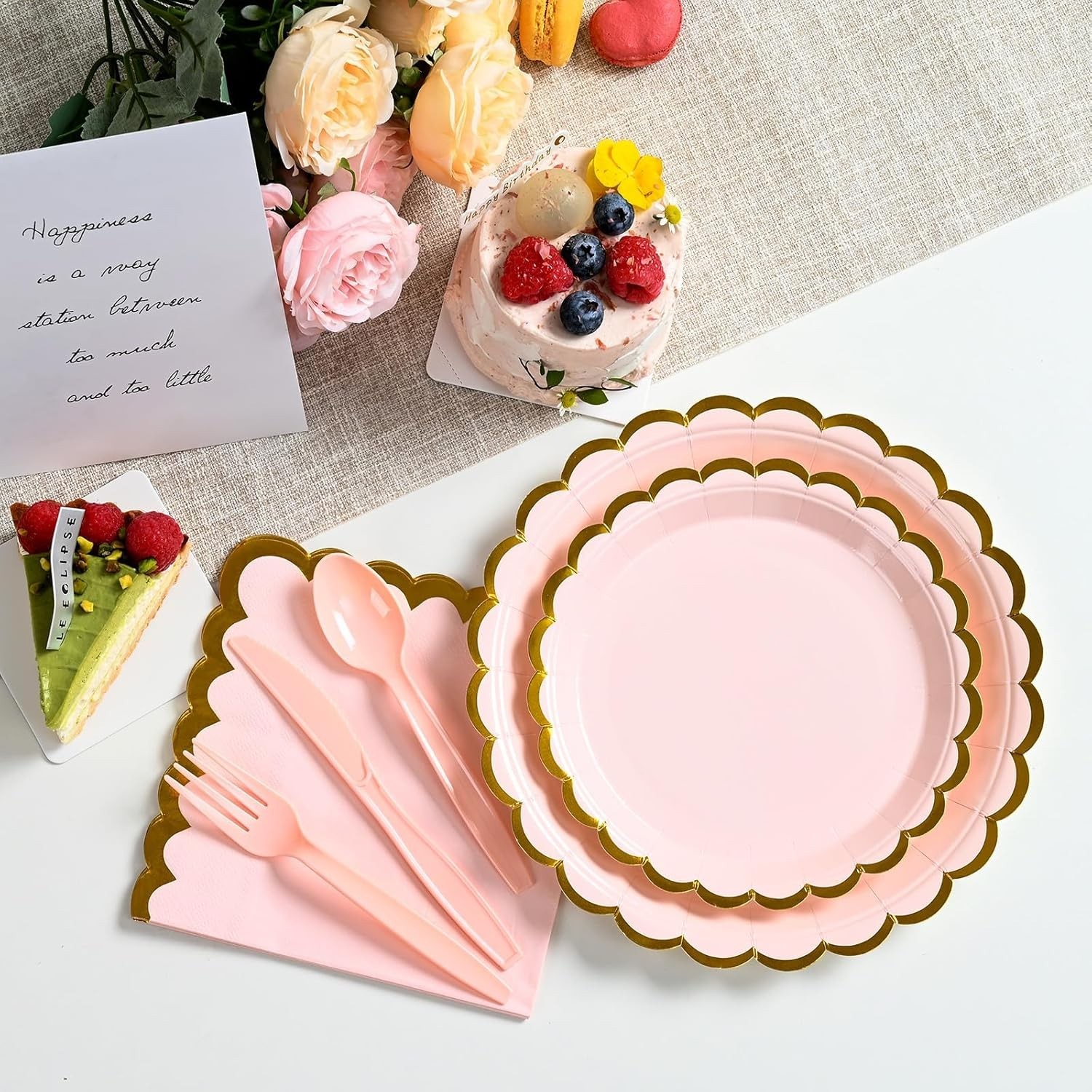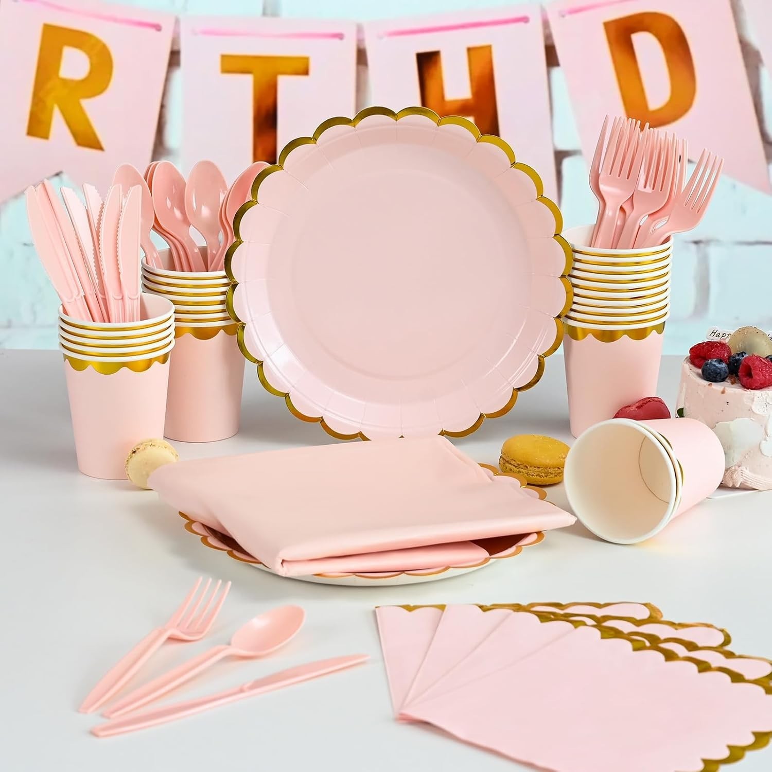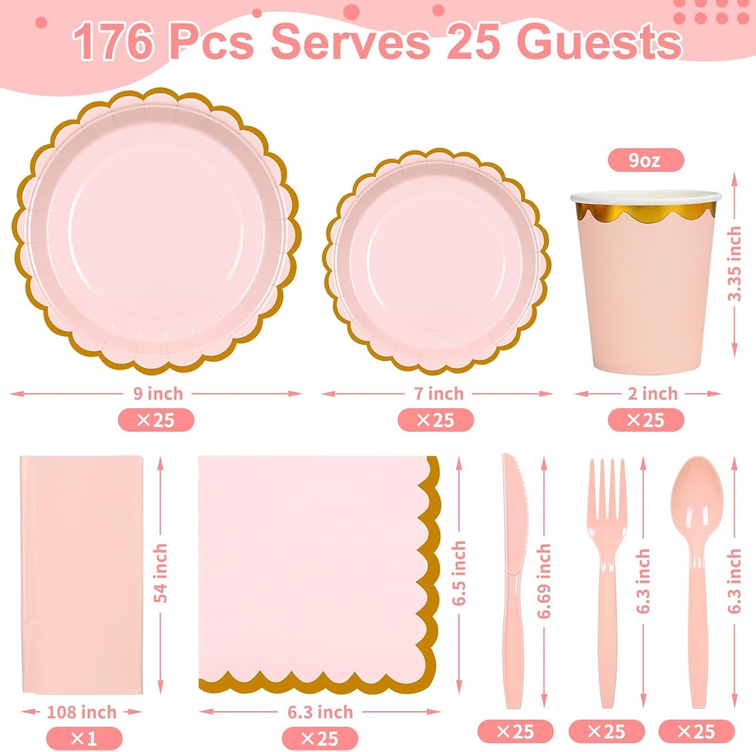 176 Pieces of Pink Paper Plates, Party Plates and Cups and Napkins Sets, Pink...