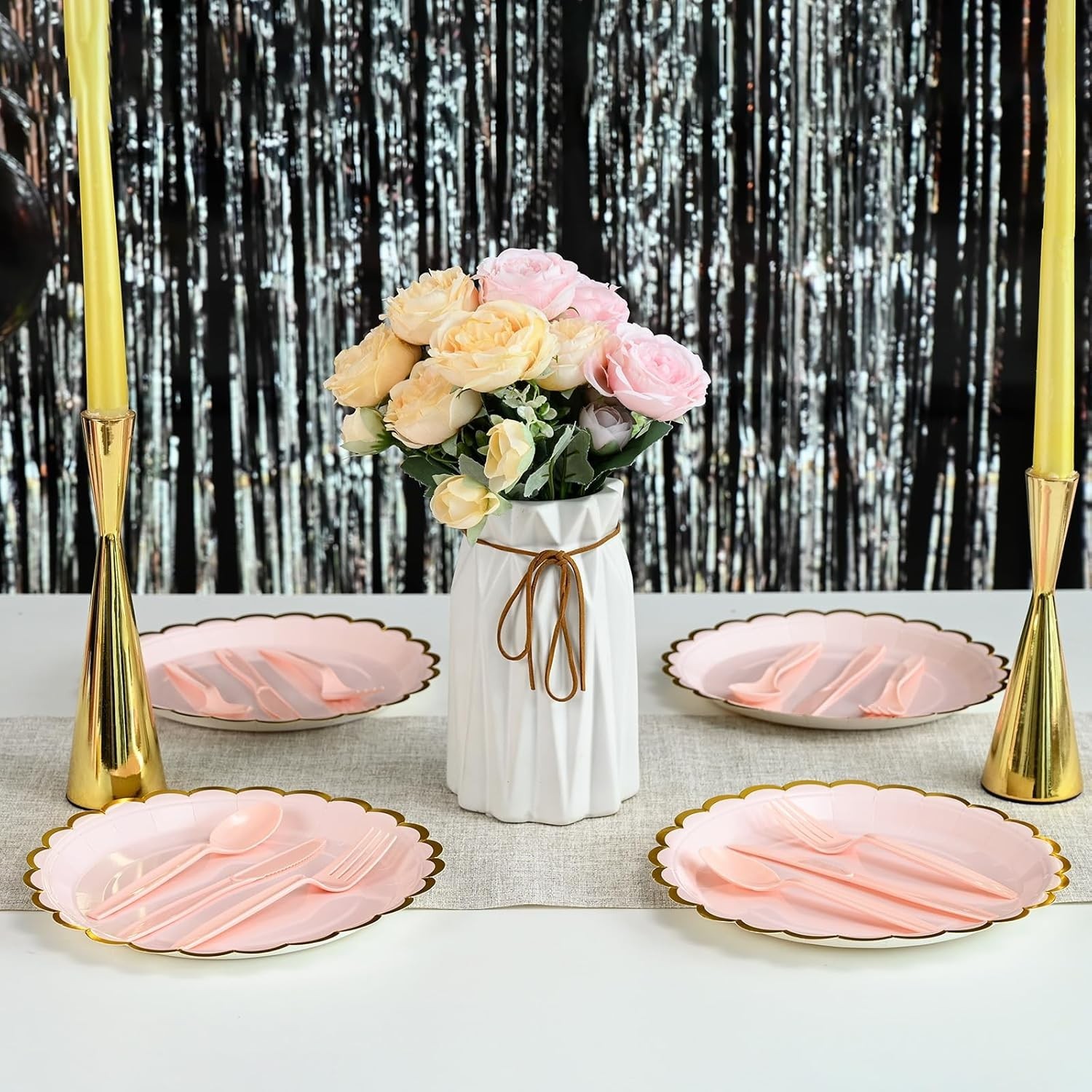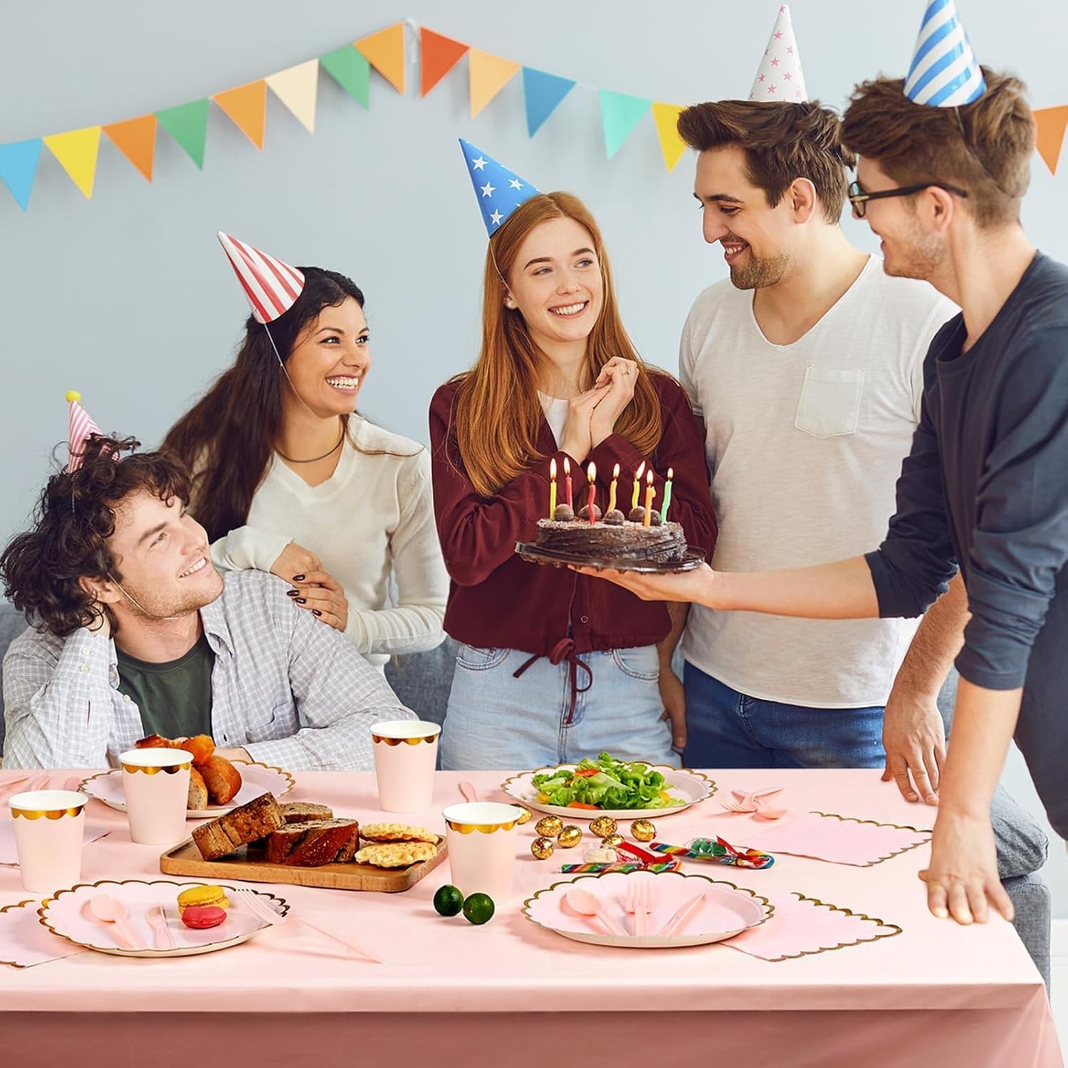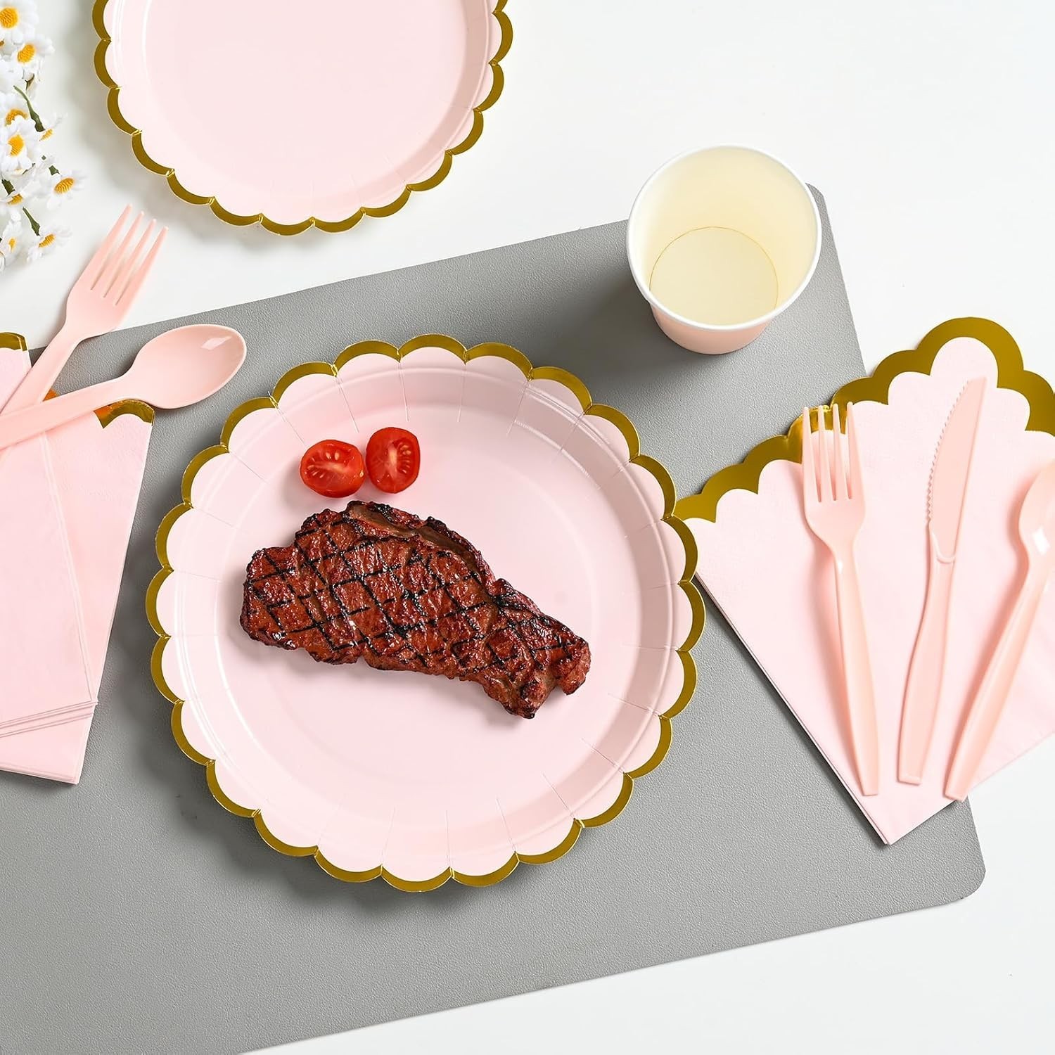 176 Pieces of Pink Paper Plates, Party Plates and Cups and Napkins Sets, Pink...