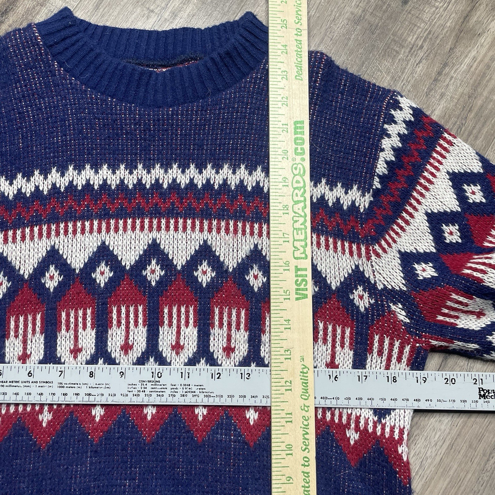 Vintage Abstract Knitwear Jumper Pullover Patterned Grandad Blue Sweater