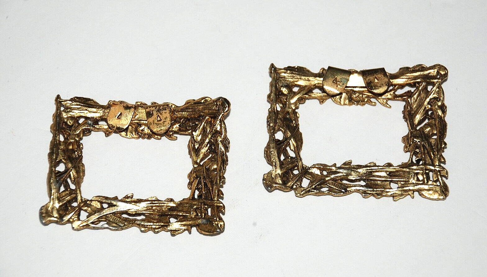 как выглядит MUSI SHOE BUCKLE Clips HIGH RELIEF Repousse Gold Tone Floral Vintage 1950s Pair фото