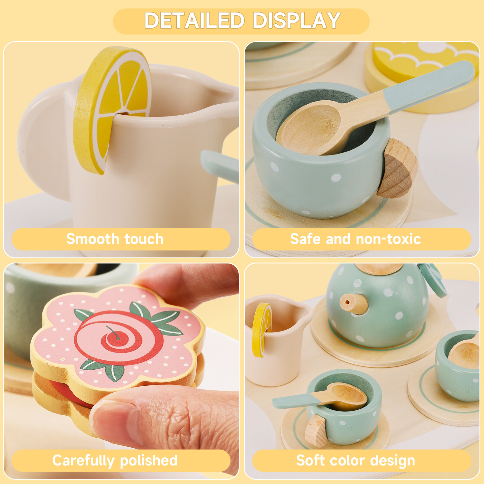 как выглядит 15Pcs Western Kitchen Wooden Tea Sets Play Kitchen Dishes/Tea Toy Set For Kid L3 фото