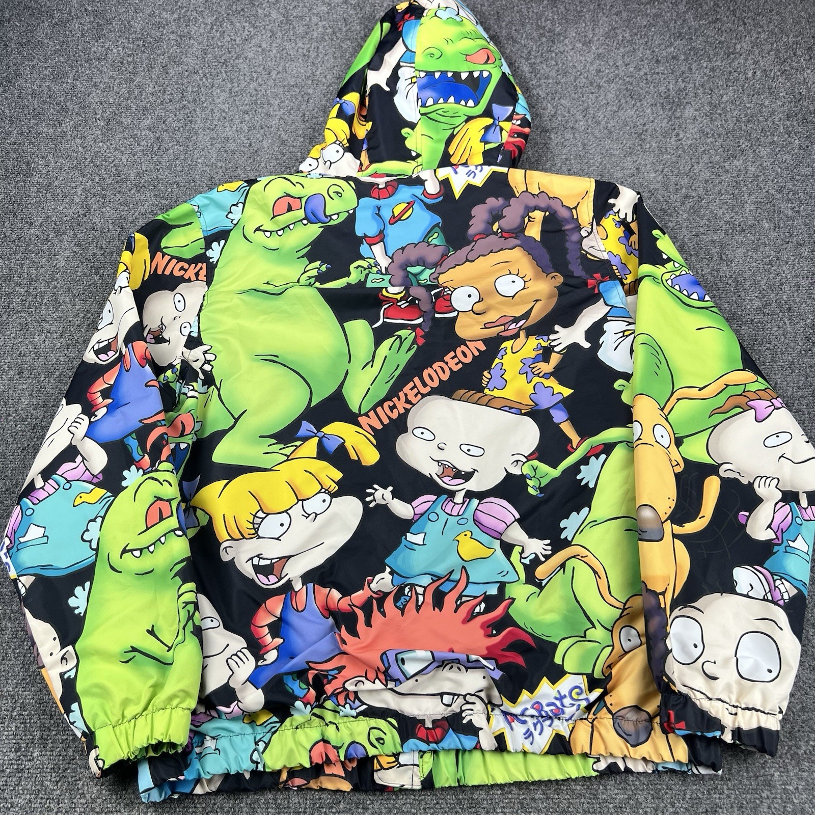 как выглядит Members Only Nickelodeon Rugrats Hooded Windbreaker Full Zip Black - Size Large фото