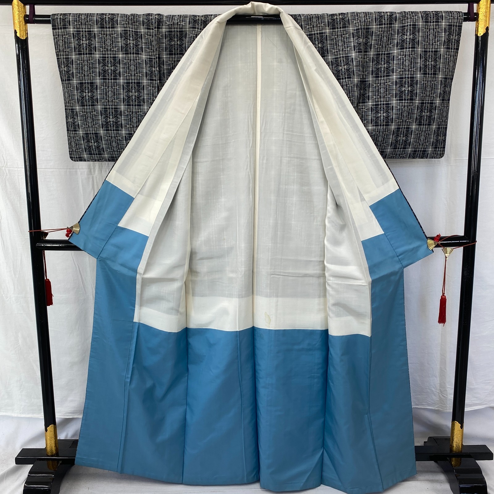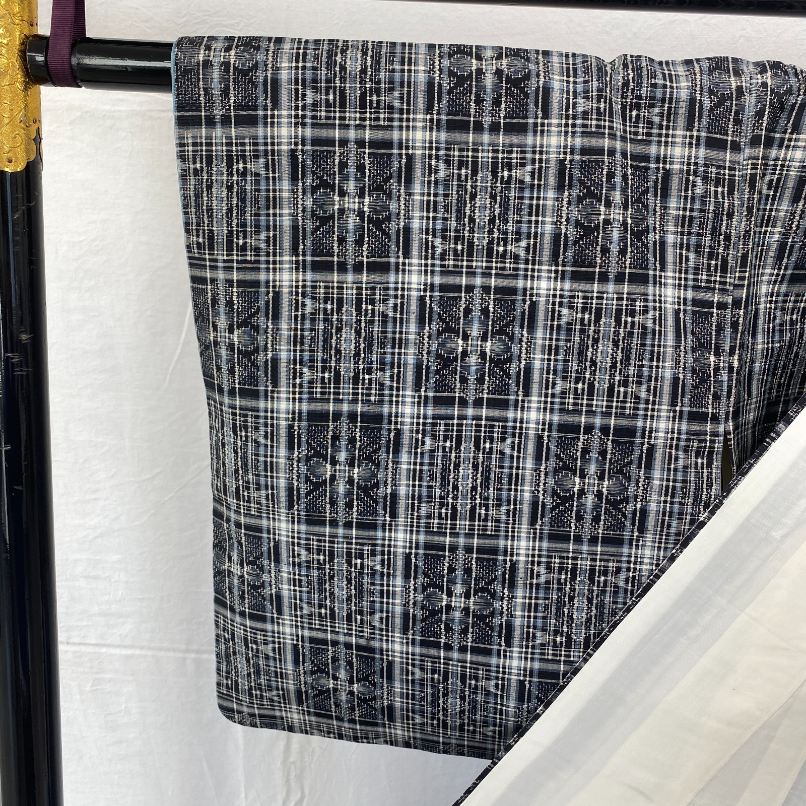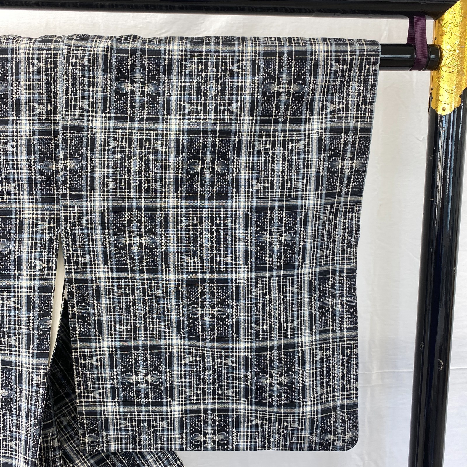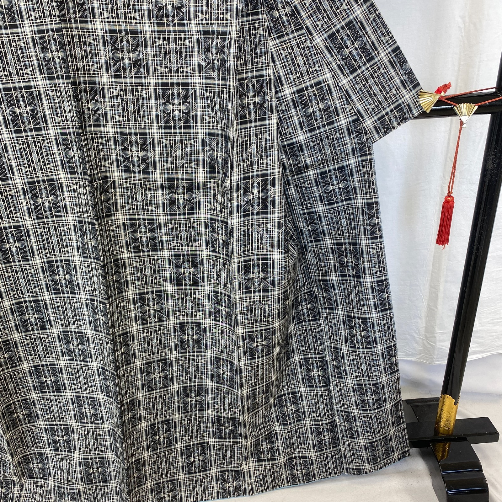 как выглядит Japanese Vintage Kimono Silk Black Tumugi Traditional Authentic Drit Length 63in фото