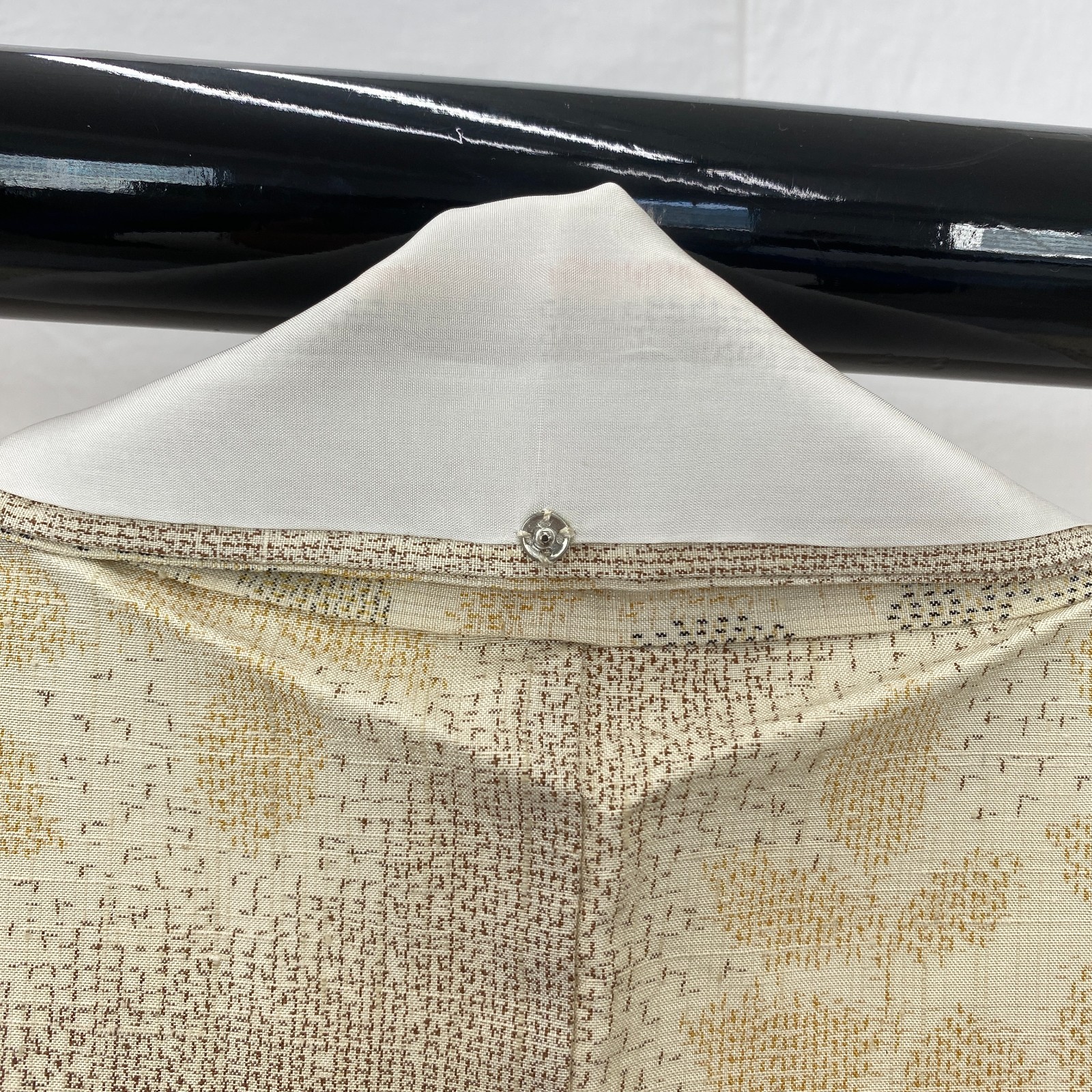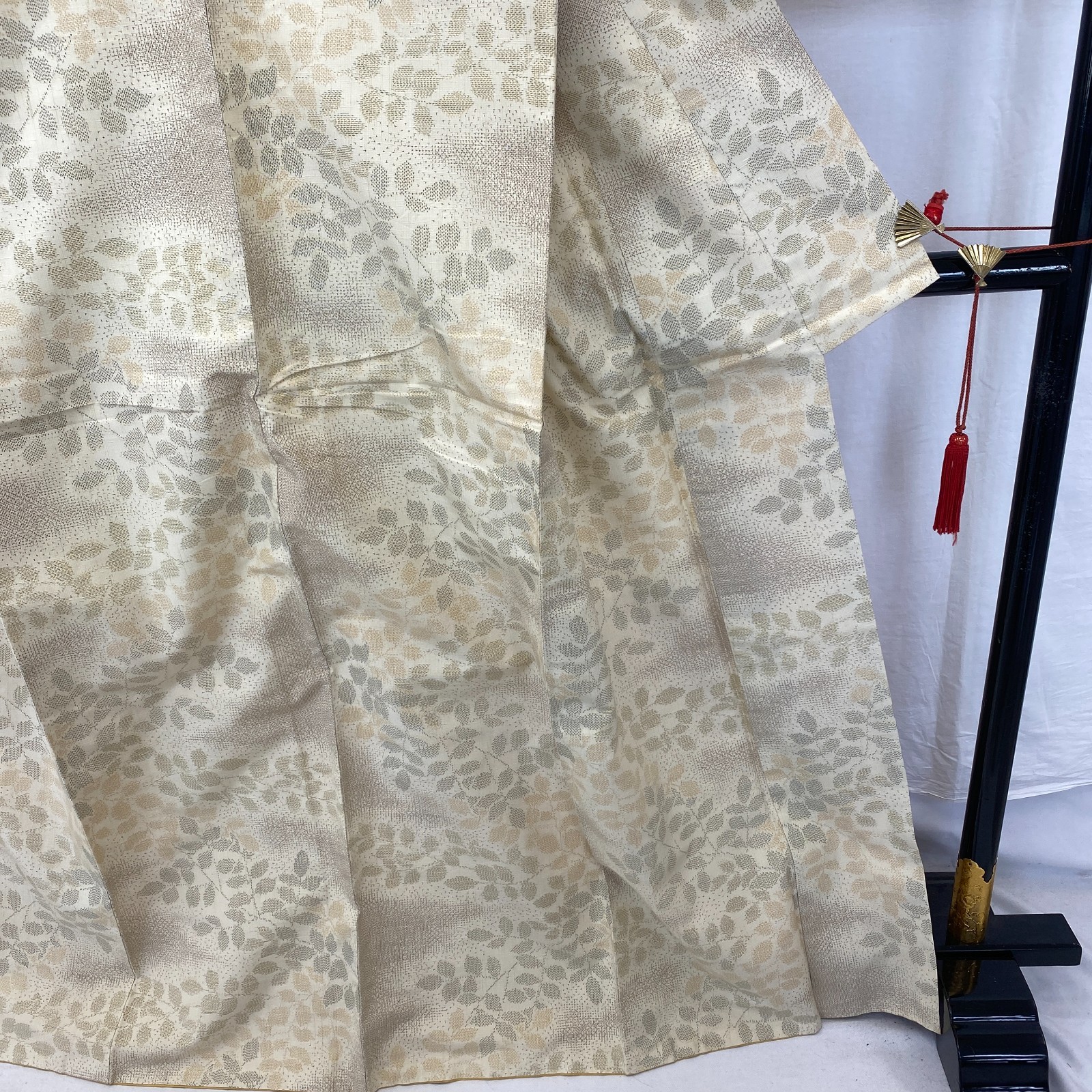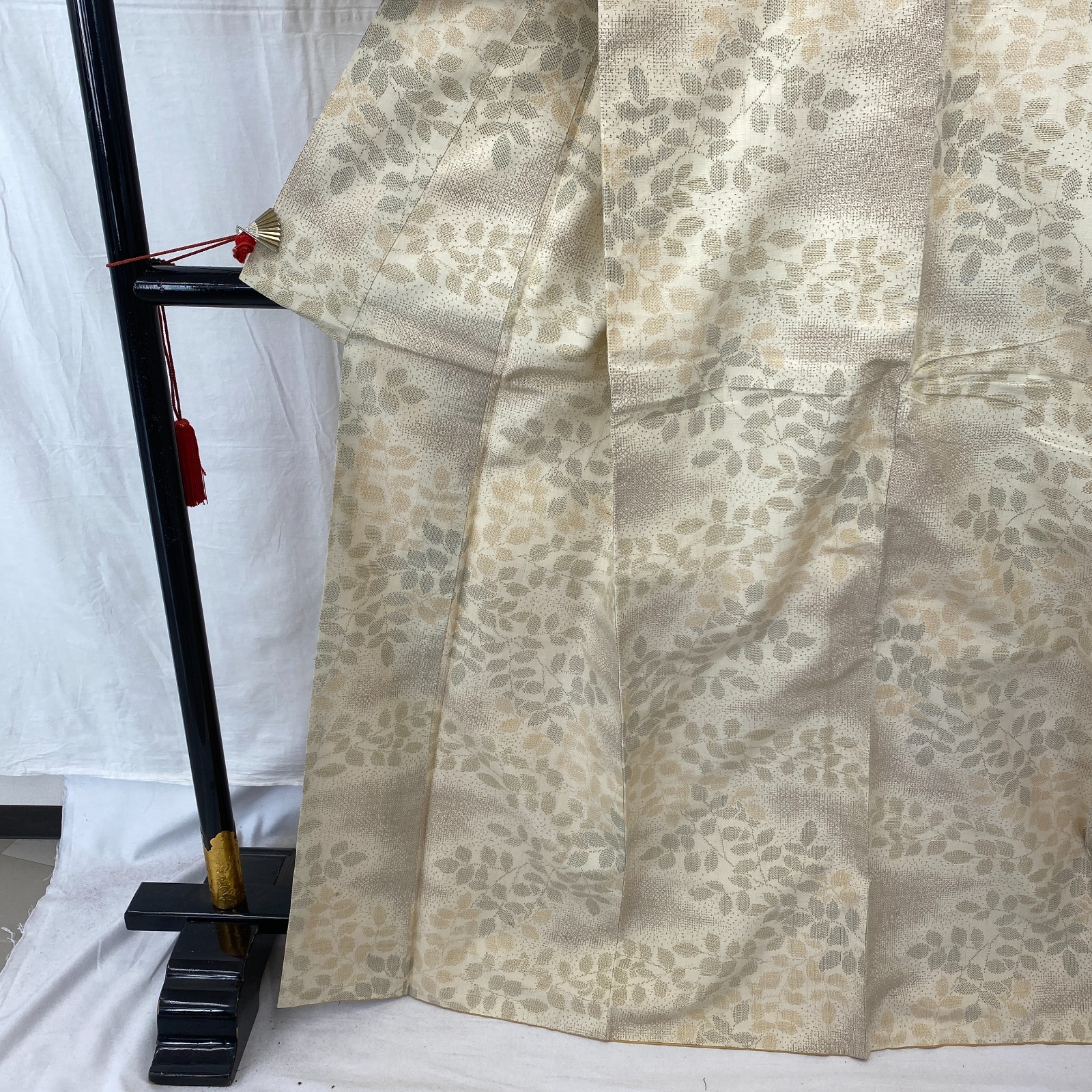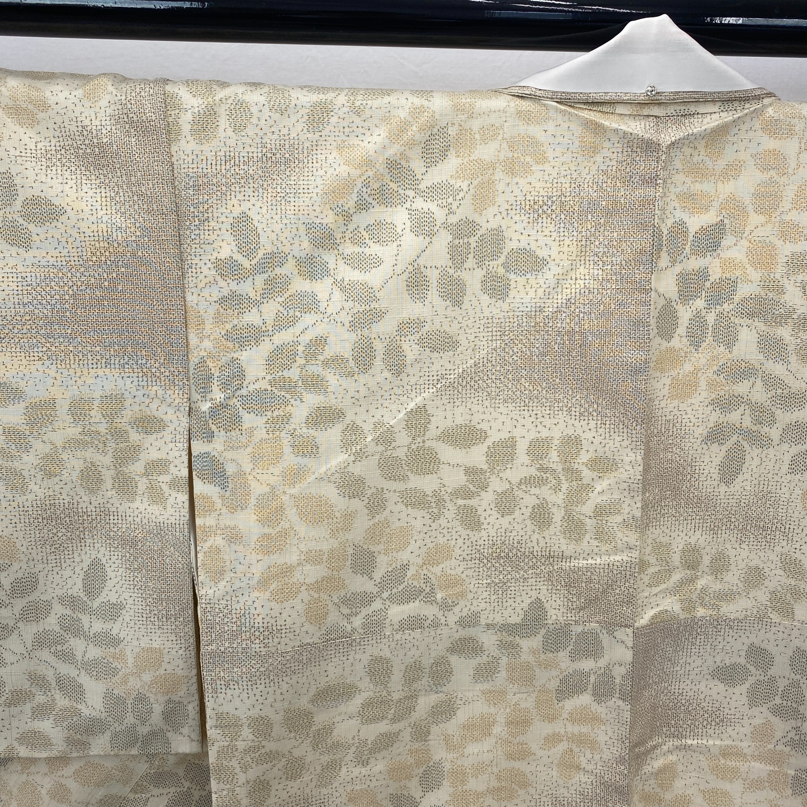Japanese Vintage Kimono Silk White Tumugi Traditional Authentic Length 64 in