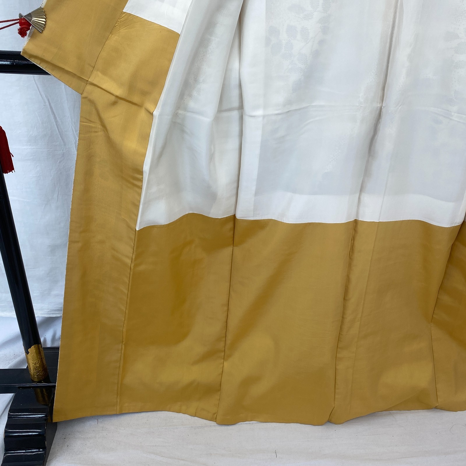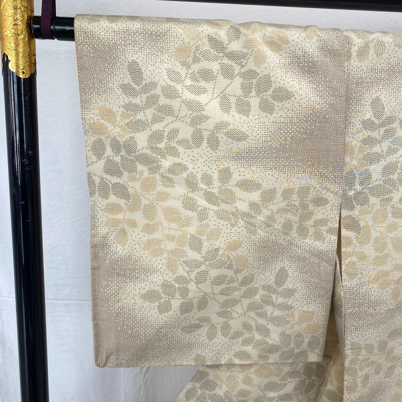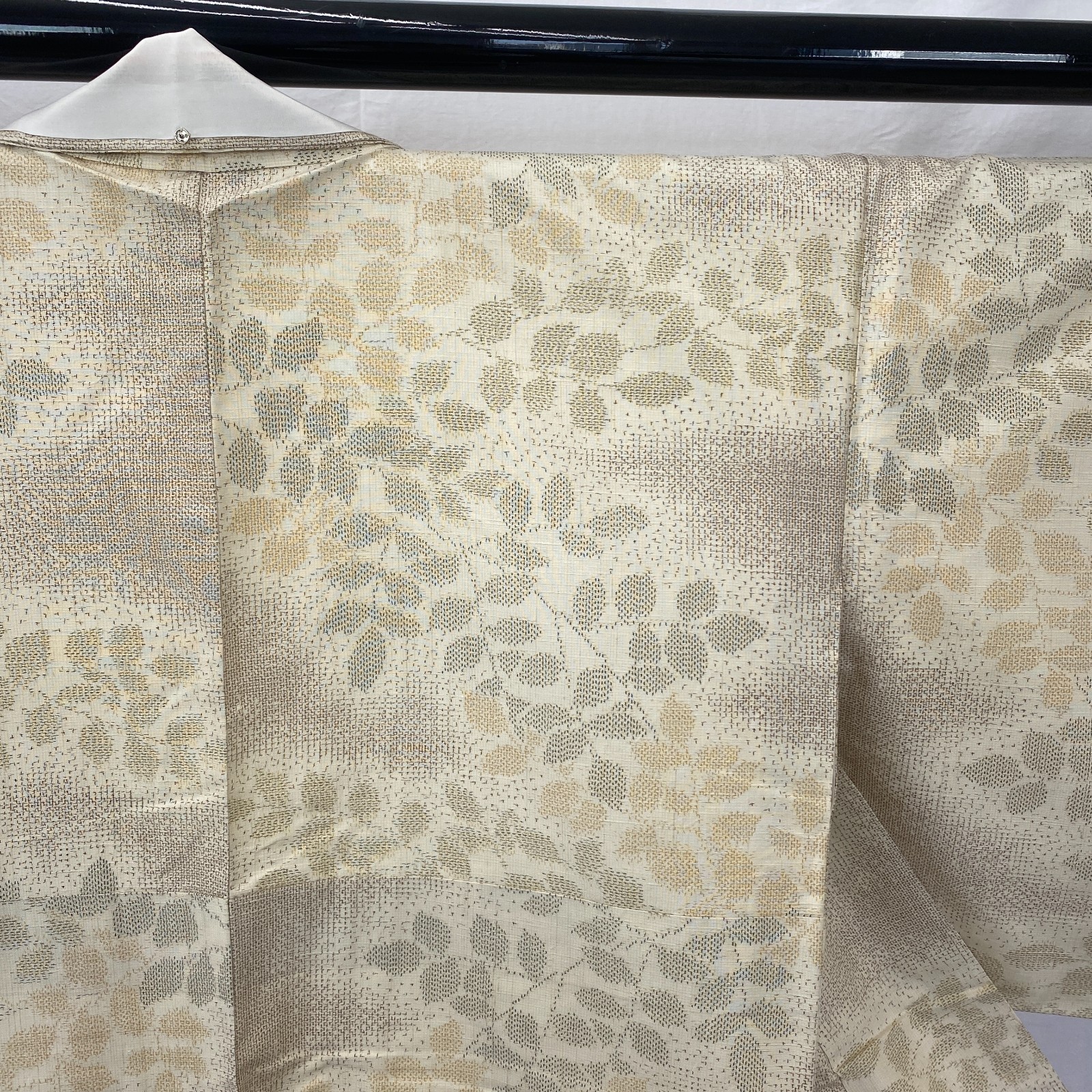 Japanese Vintage Kimono Silk White Tumugi Traditional Authentic Length 64 in