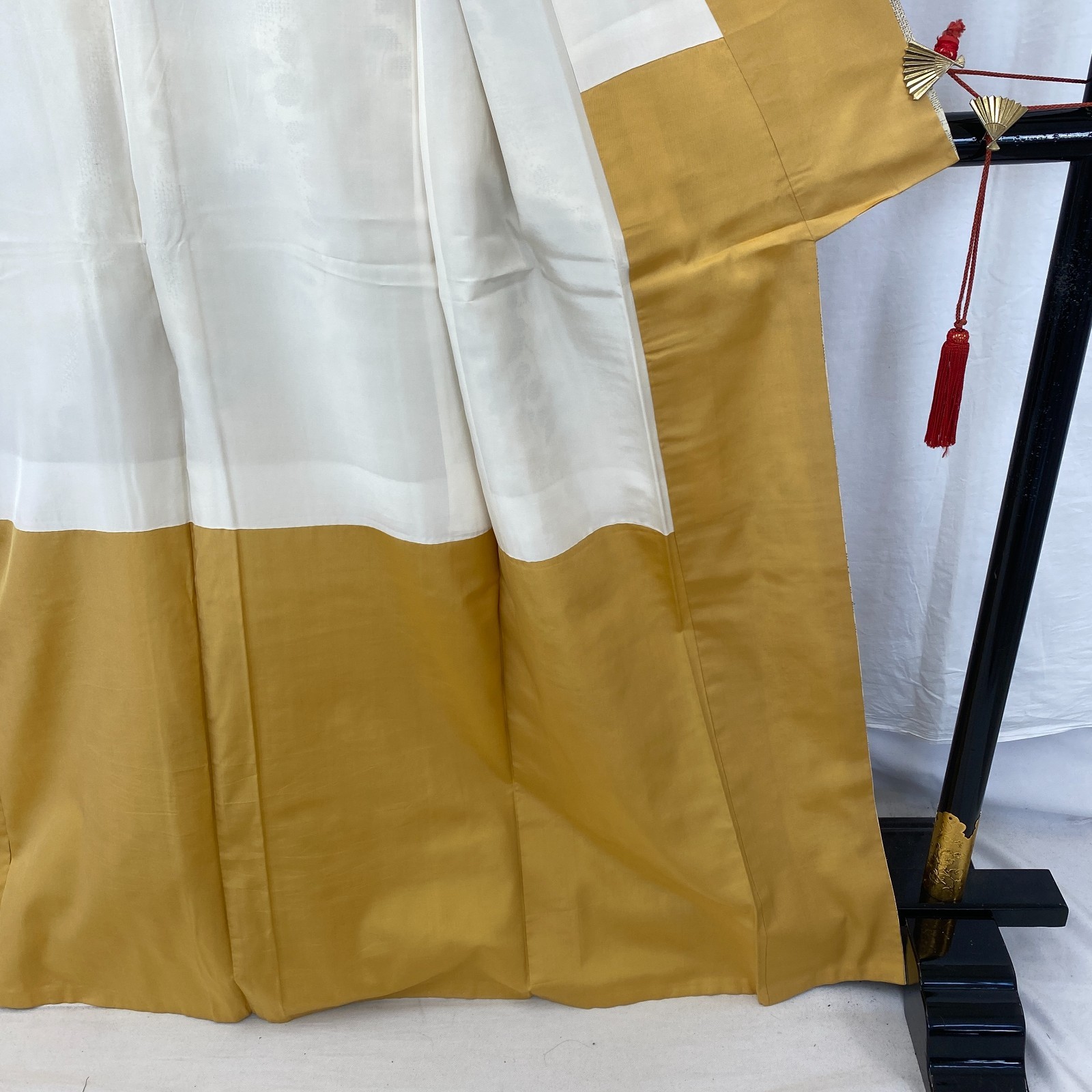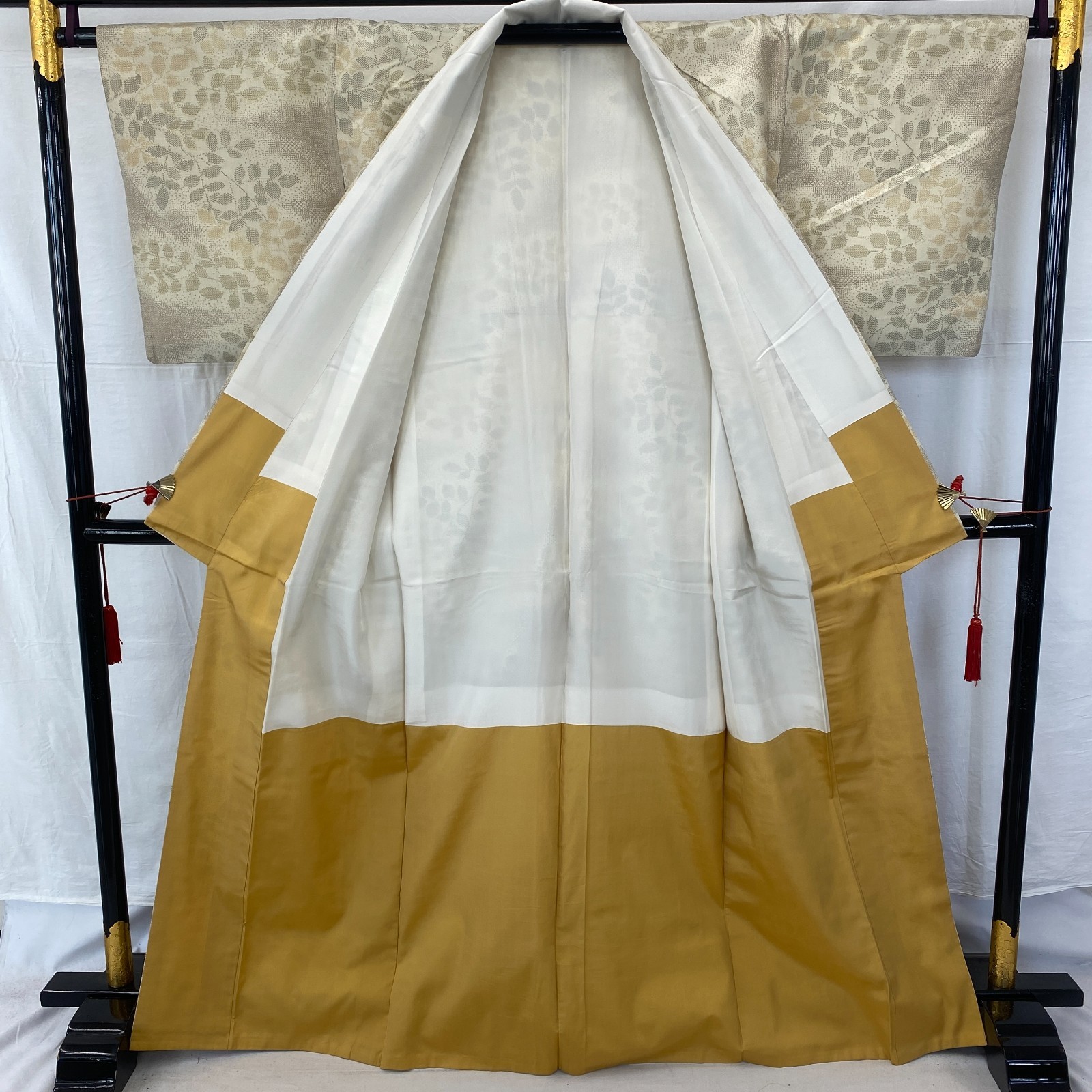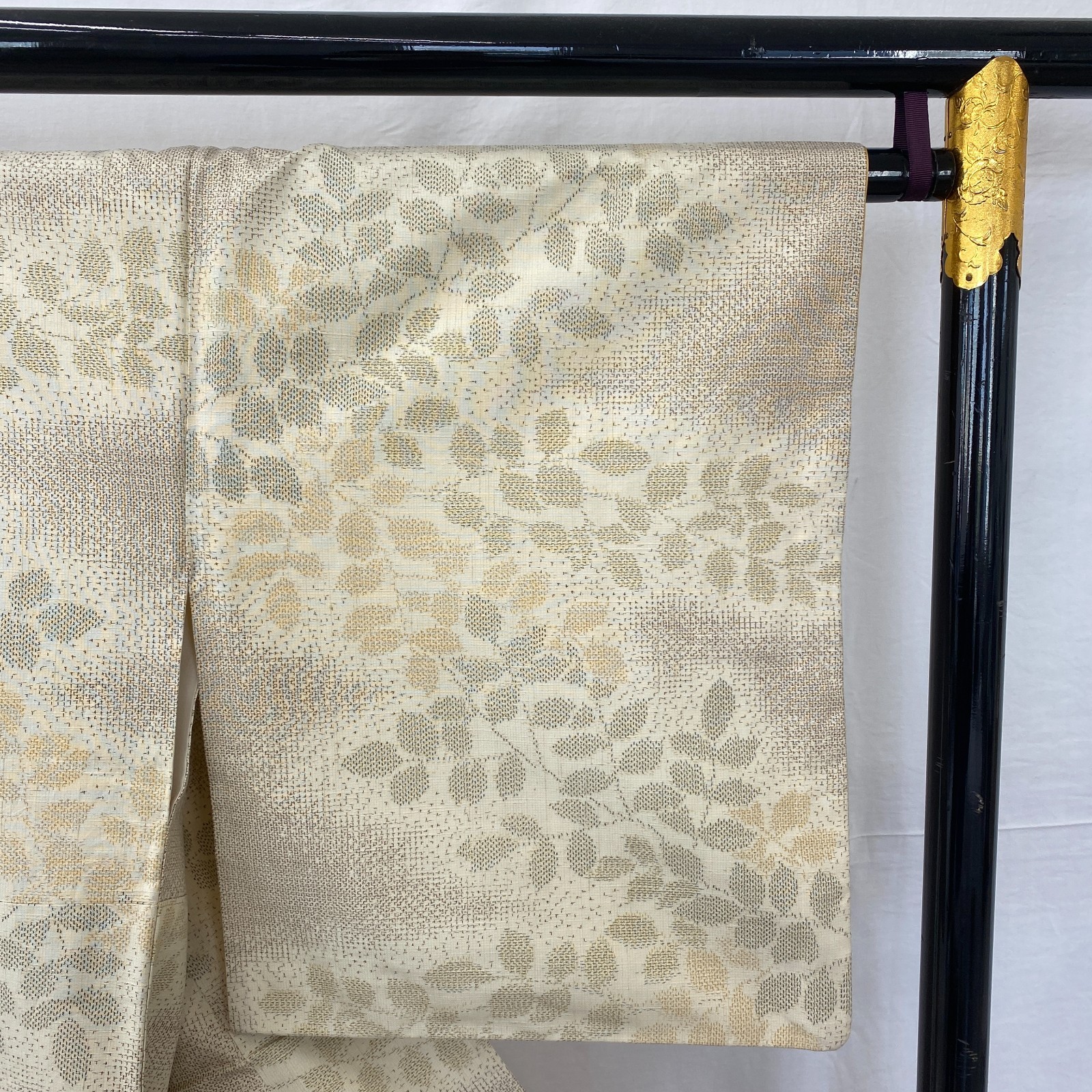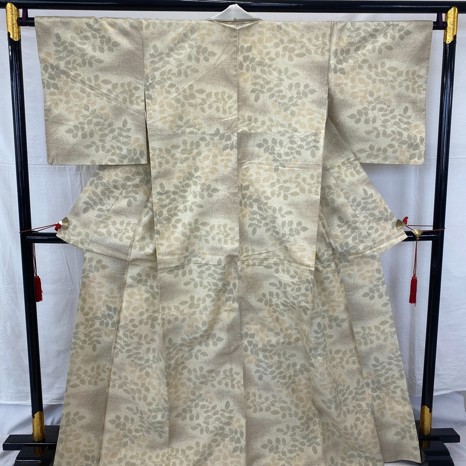 Japanese Vintage Kimono Silk White Tumugi Traditional Authentic Length 64 in