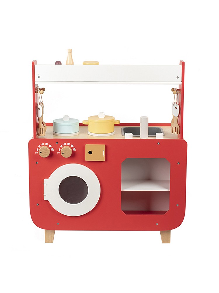 как выглядит Red Play Kitchen Set Toy With Washing Machine And Oven Gift Fit For Kid Age 3 фото
