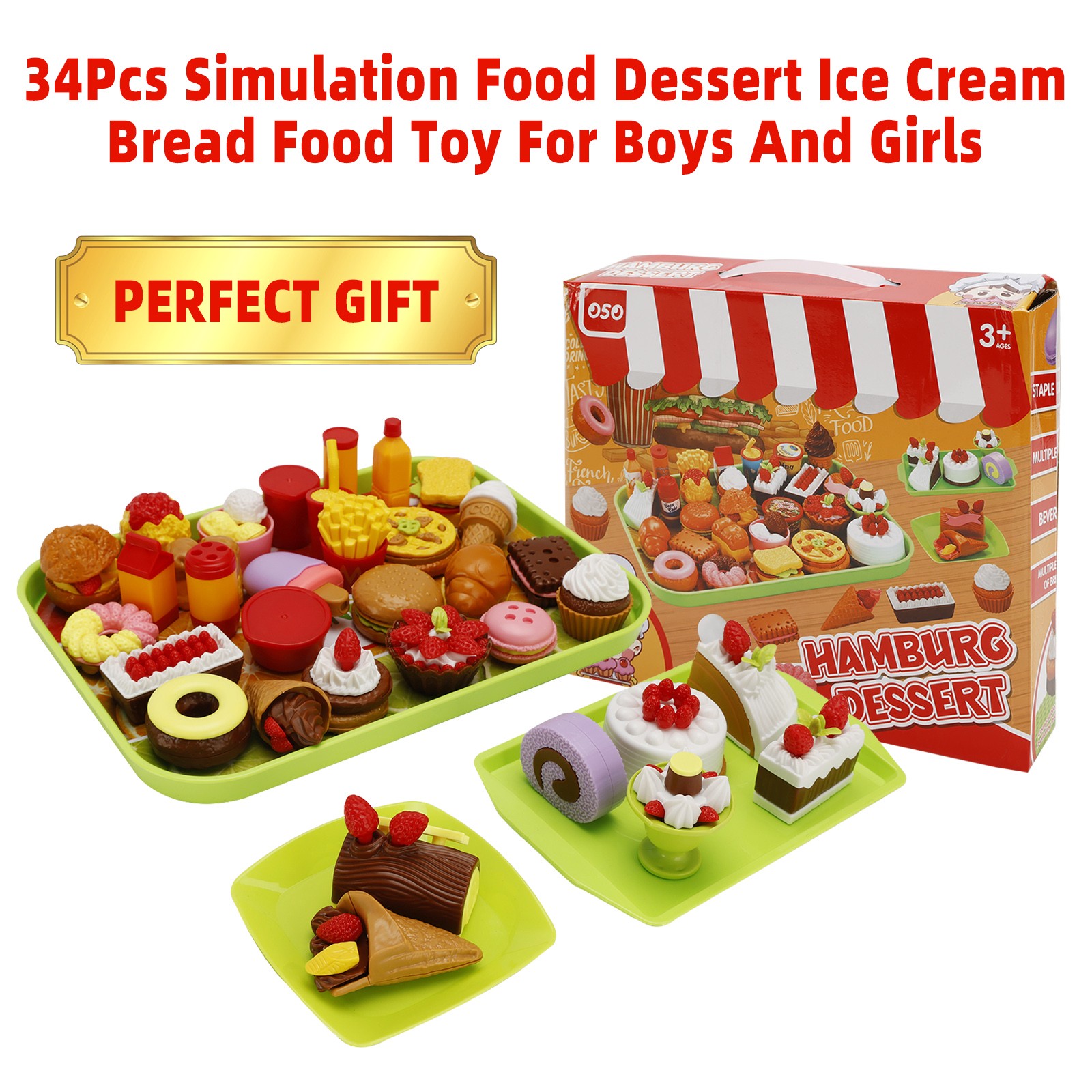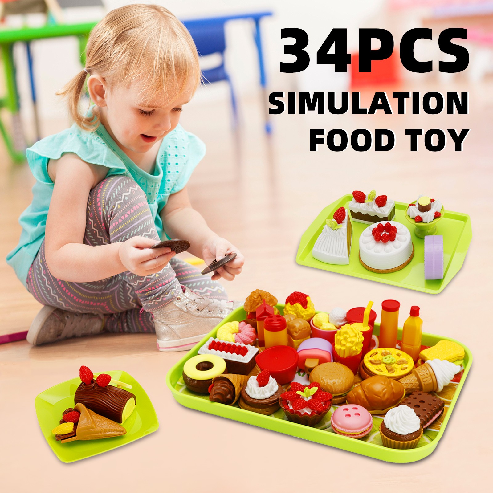 New 34Pcs Simulation Food Dessert Ice Cream Bread Food Toy FIT Boys And Girls