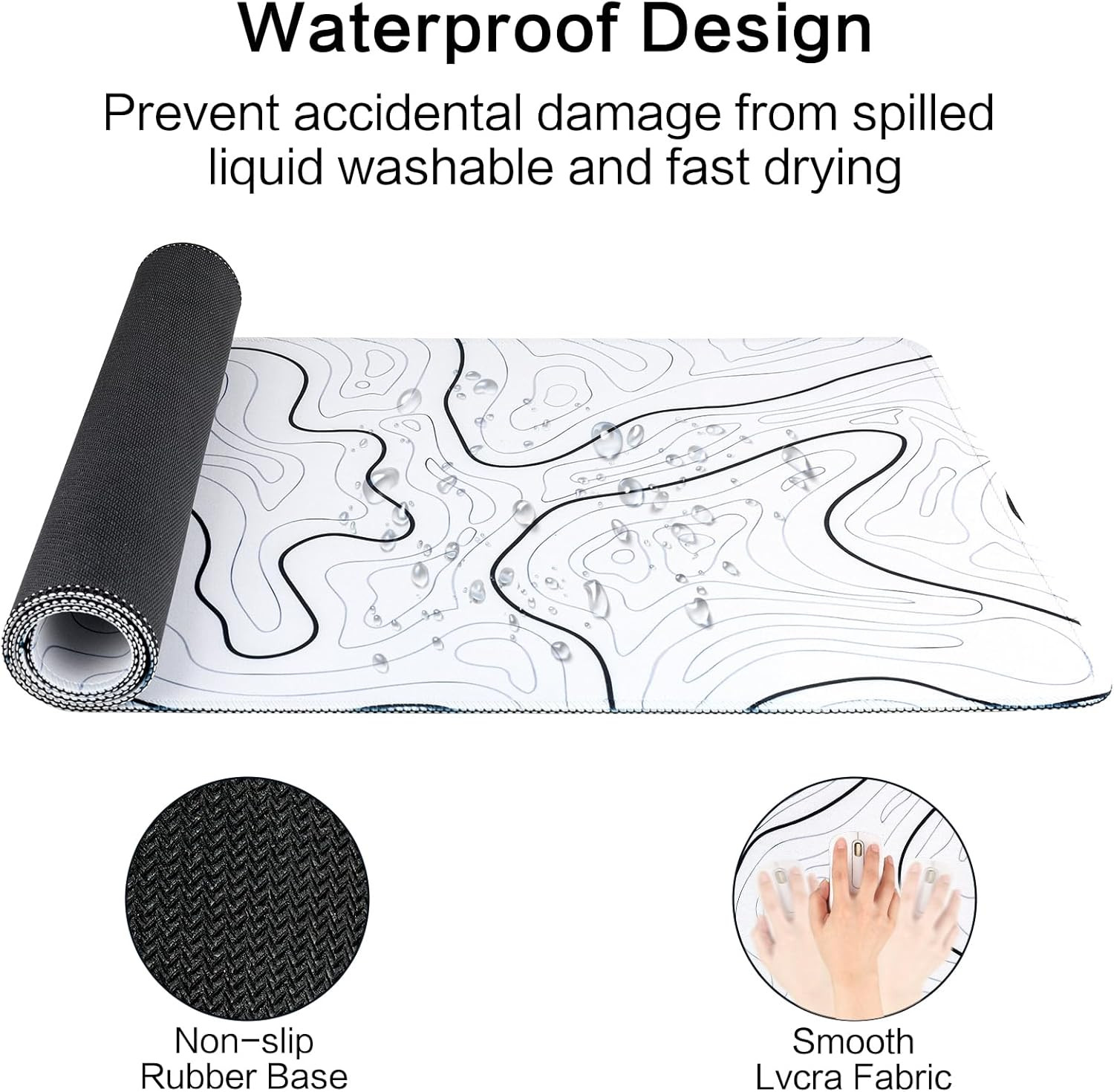 Large Gaming Mouse Pad for Desk, White Topographic Mouse Pad Desk Mat for Gaming