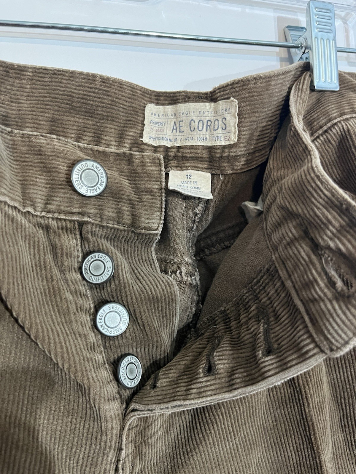 как выглядит American Eagle AE Cords Beige Corduroy Button-Fly Straight Pants Size 12 32 фото