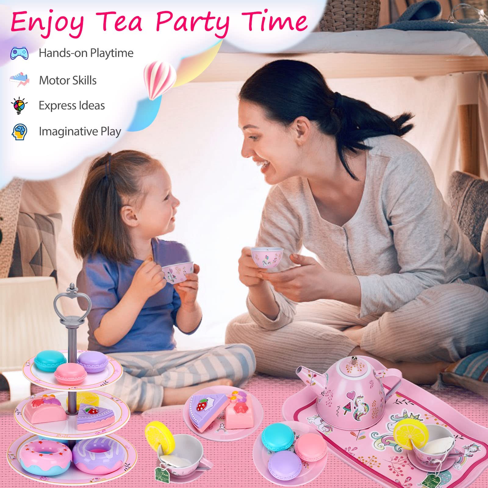 Tea Set Girls Toys 36pcs, Tin Unicorn Tea Party Set Toy Pretend Play Gifts fo...