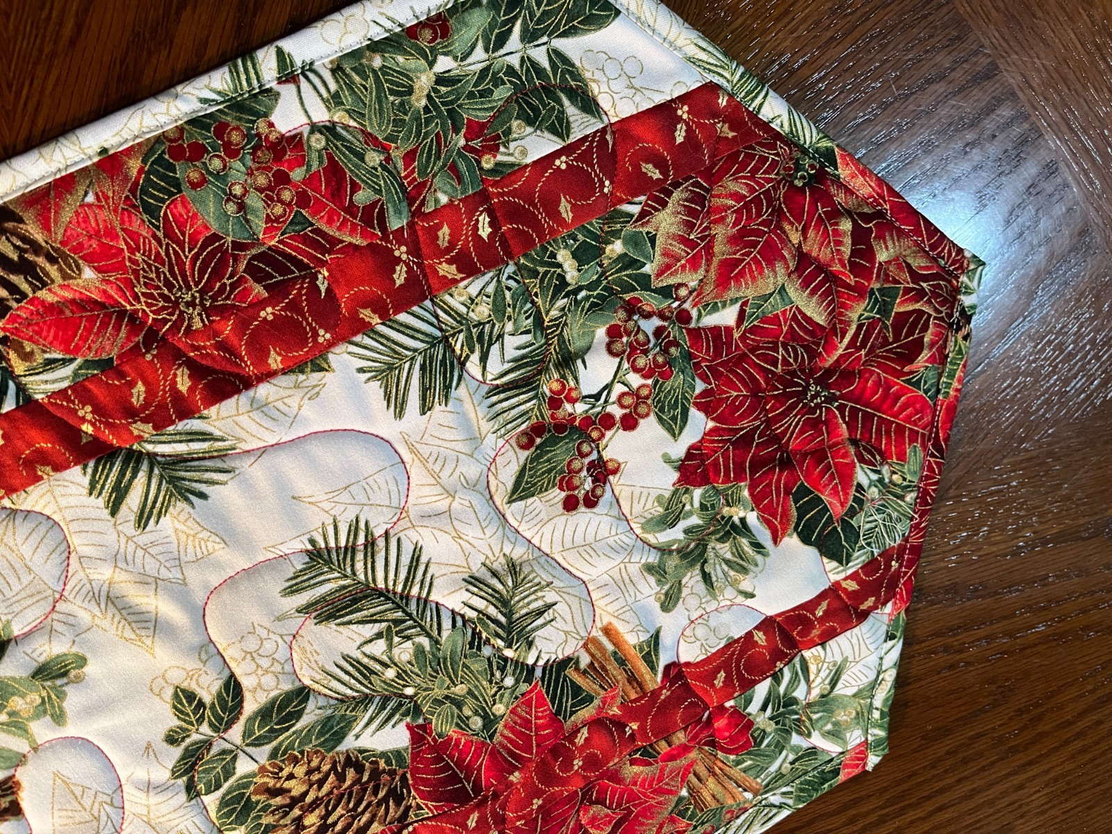 Handcrafted - Quilted Table Runner - Christmas Celebration, Poinsettias, NEW2025