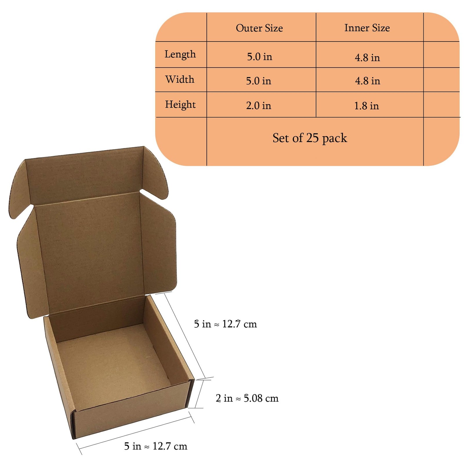5x5x2 inches Shipping Boxes Set of 25, Brown Corrugated Mailing Cardboard Box...