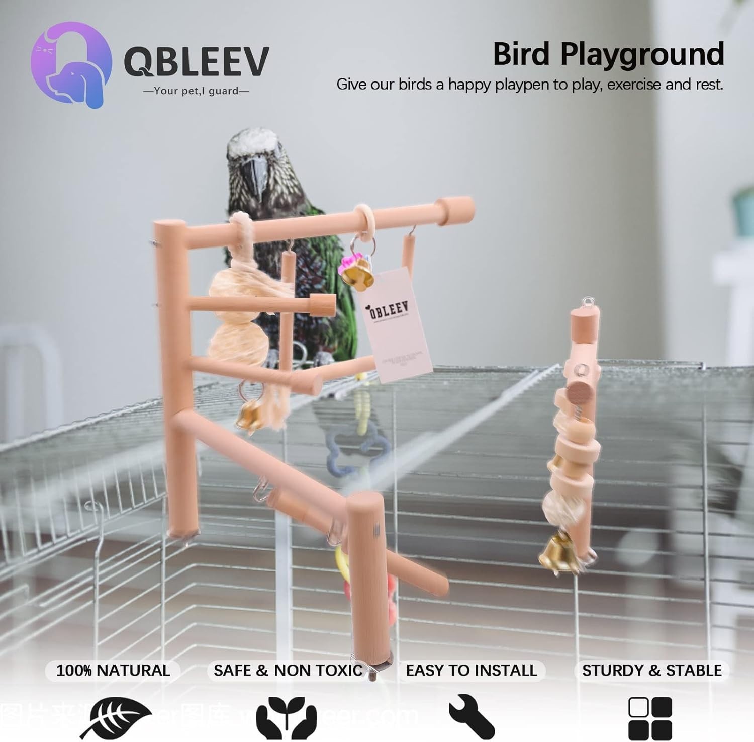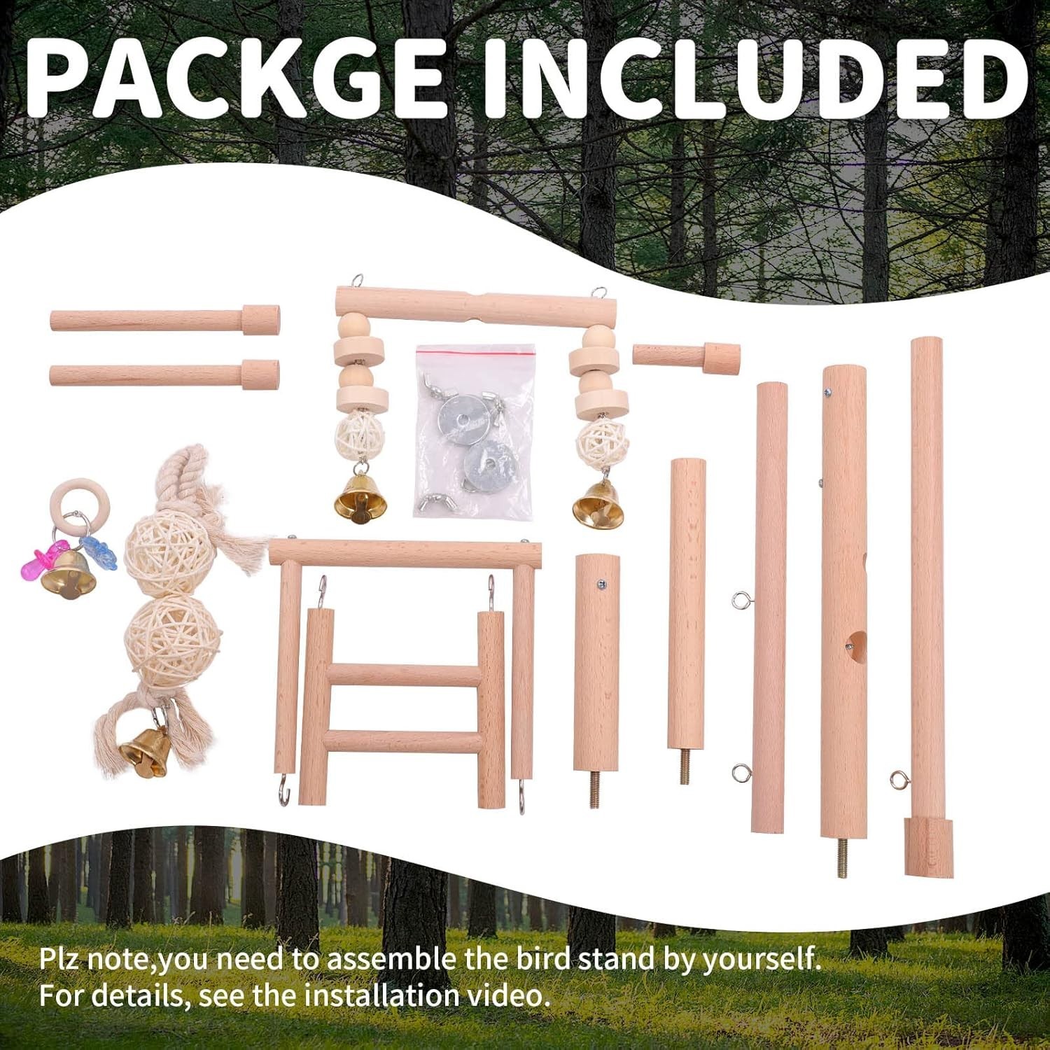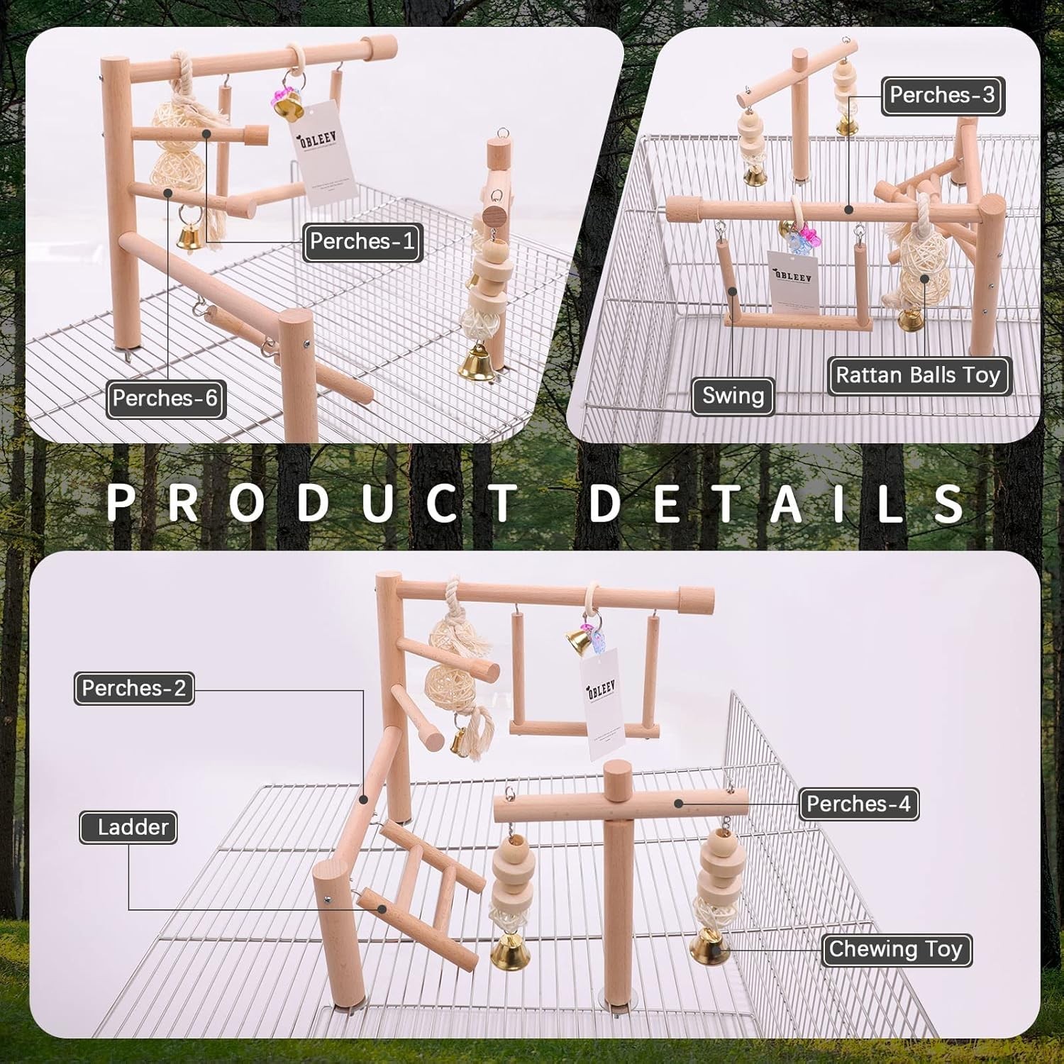 Engaging Bird Cage Play Stand Set: Natural Wood with Chew Toys for Parrots
