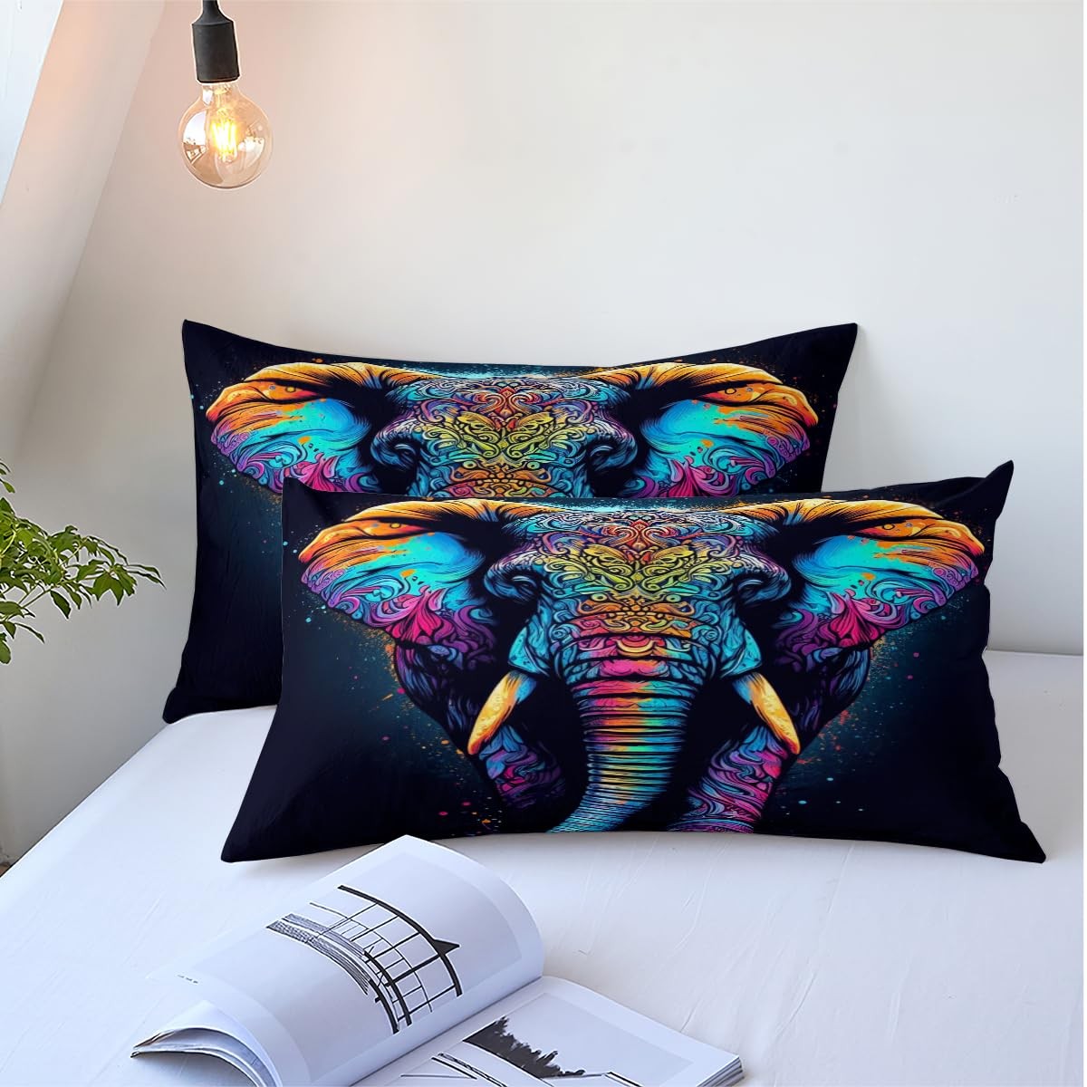 King Comforter, Painted Elephant Beautiful Bedding Comforter Sets, 3 Pieces, ...