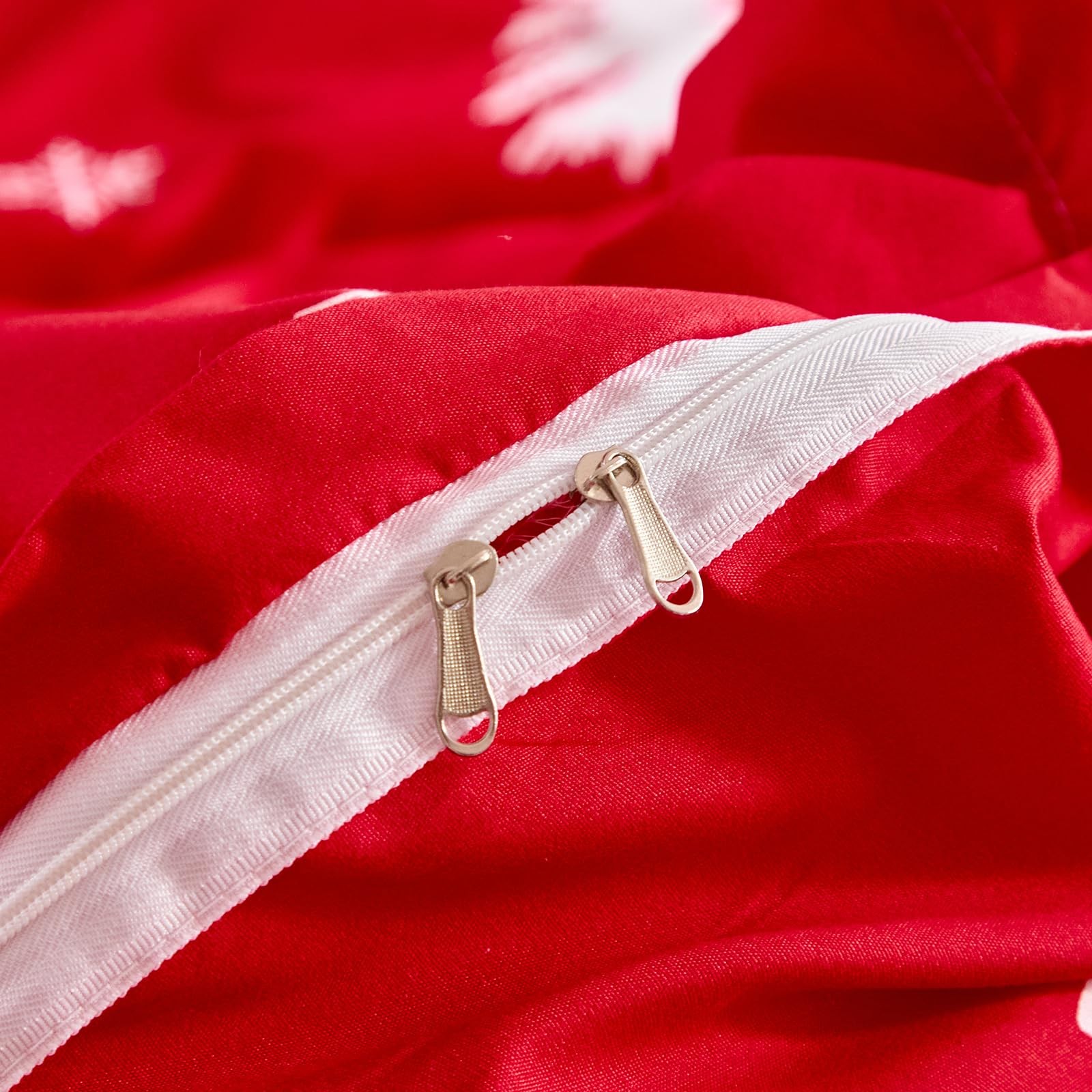 Christmas Duvet Cover Set King Size, White Deer and Snowflake on Red Xmas Hol...
