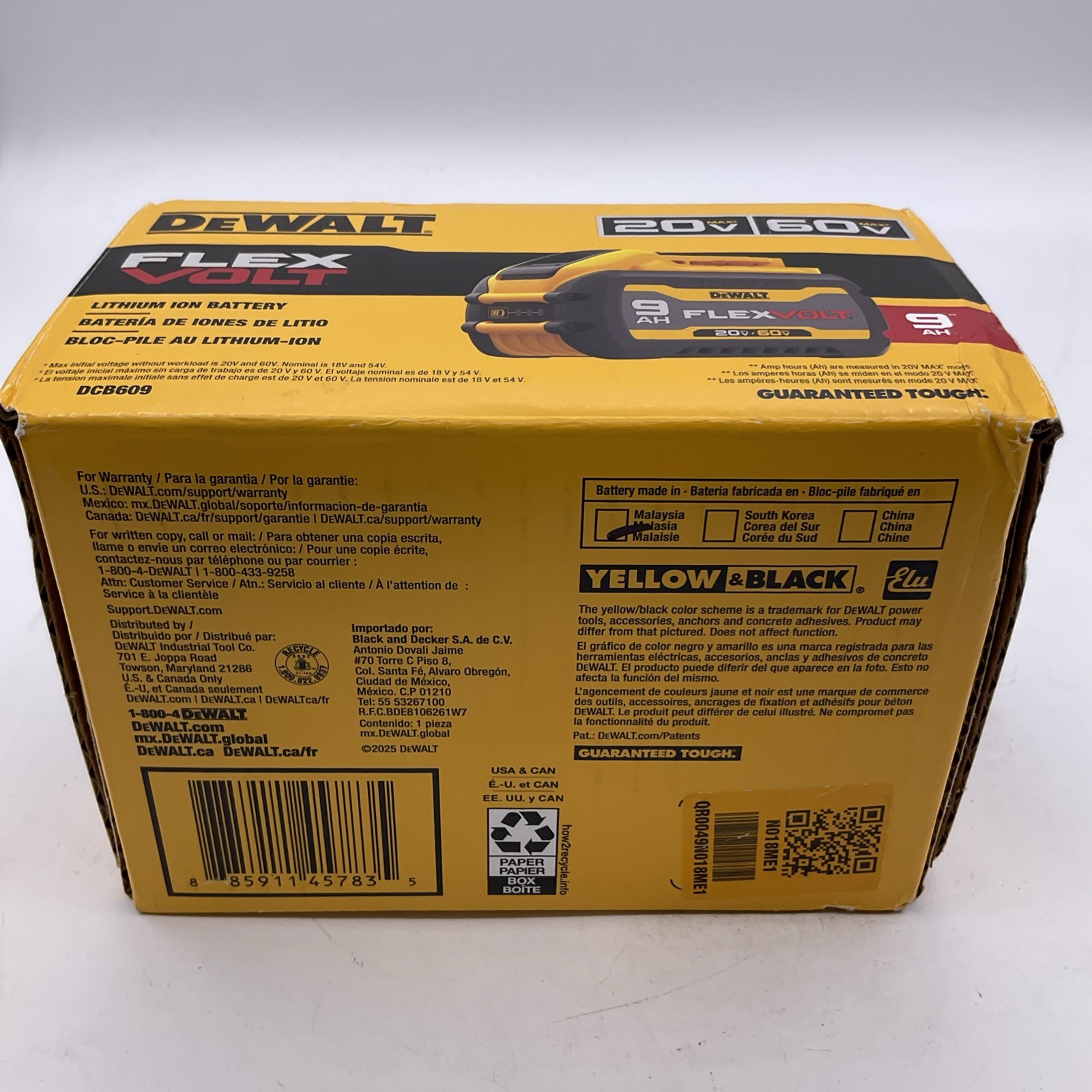 DeWALT DCB609 FlexVolt 20V / 60V MAX 9.0Ah 9 AH Lithium-Ion Battery 2025