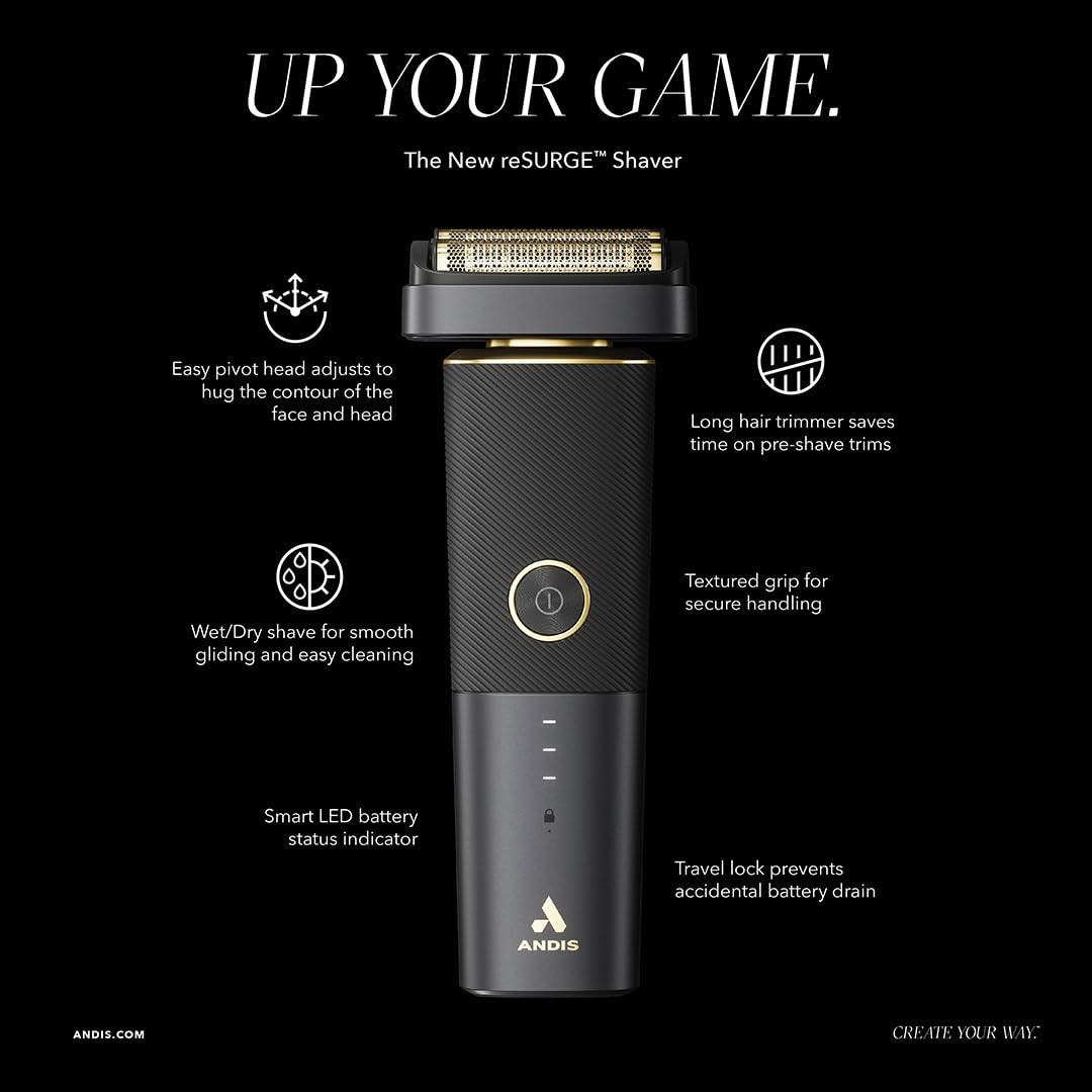 Andis 17300 reSURGE Electric Shaver, Lithium Titanium, Wet/Dry, Black